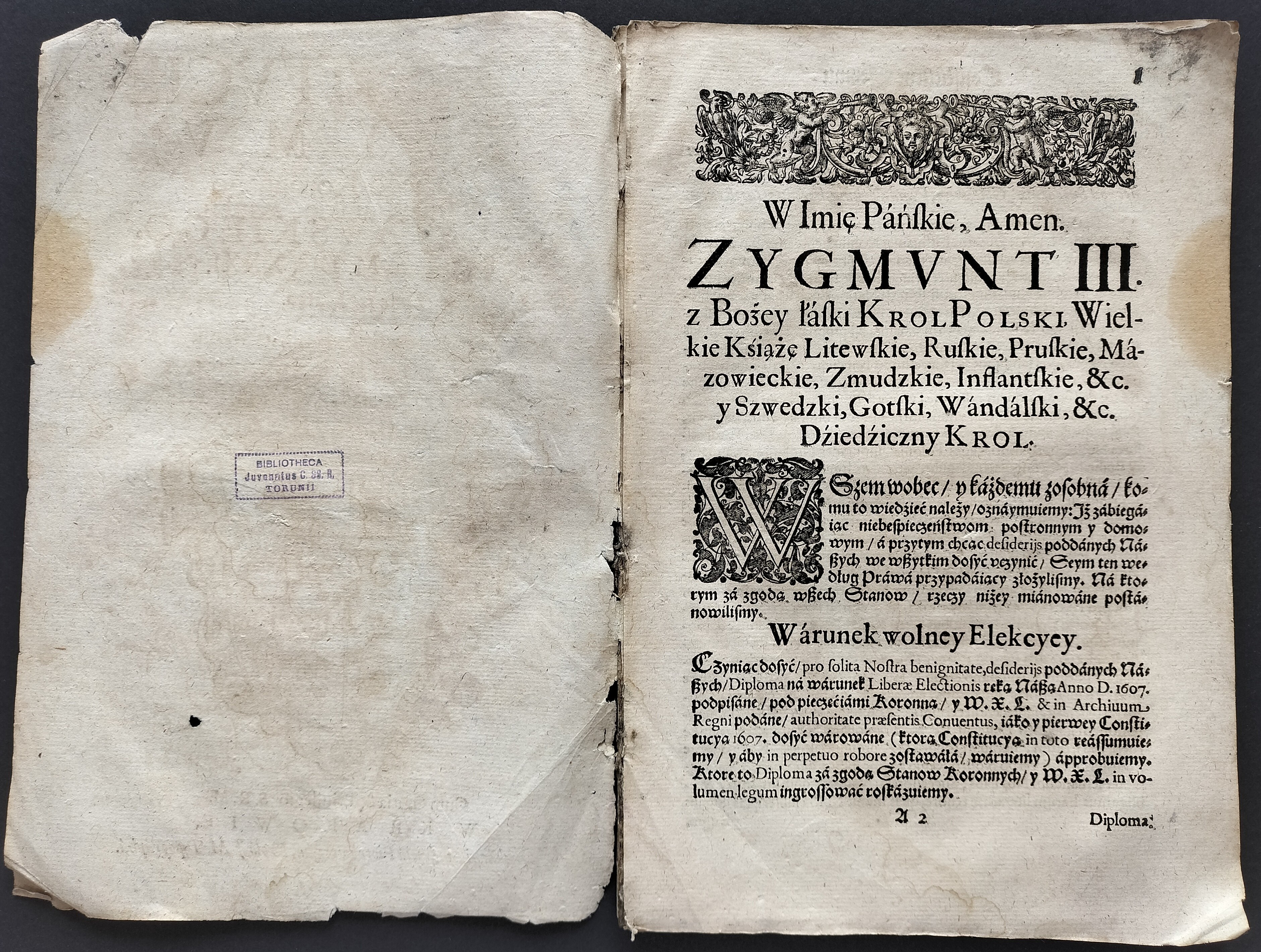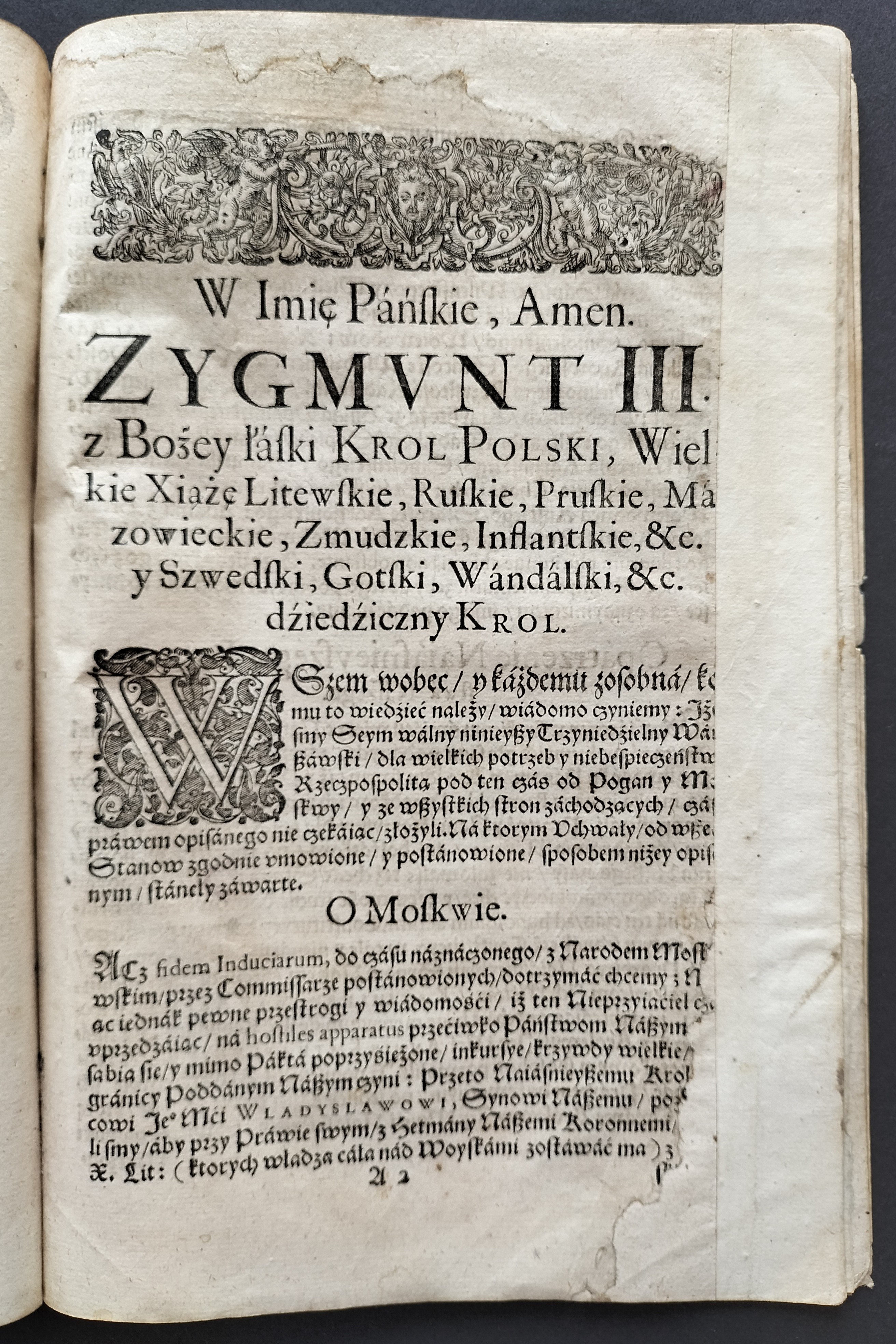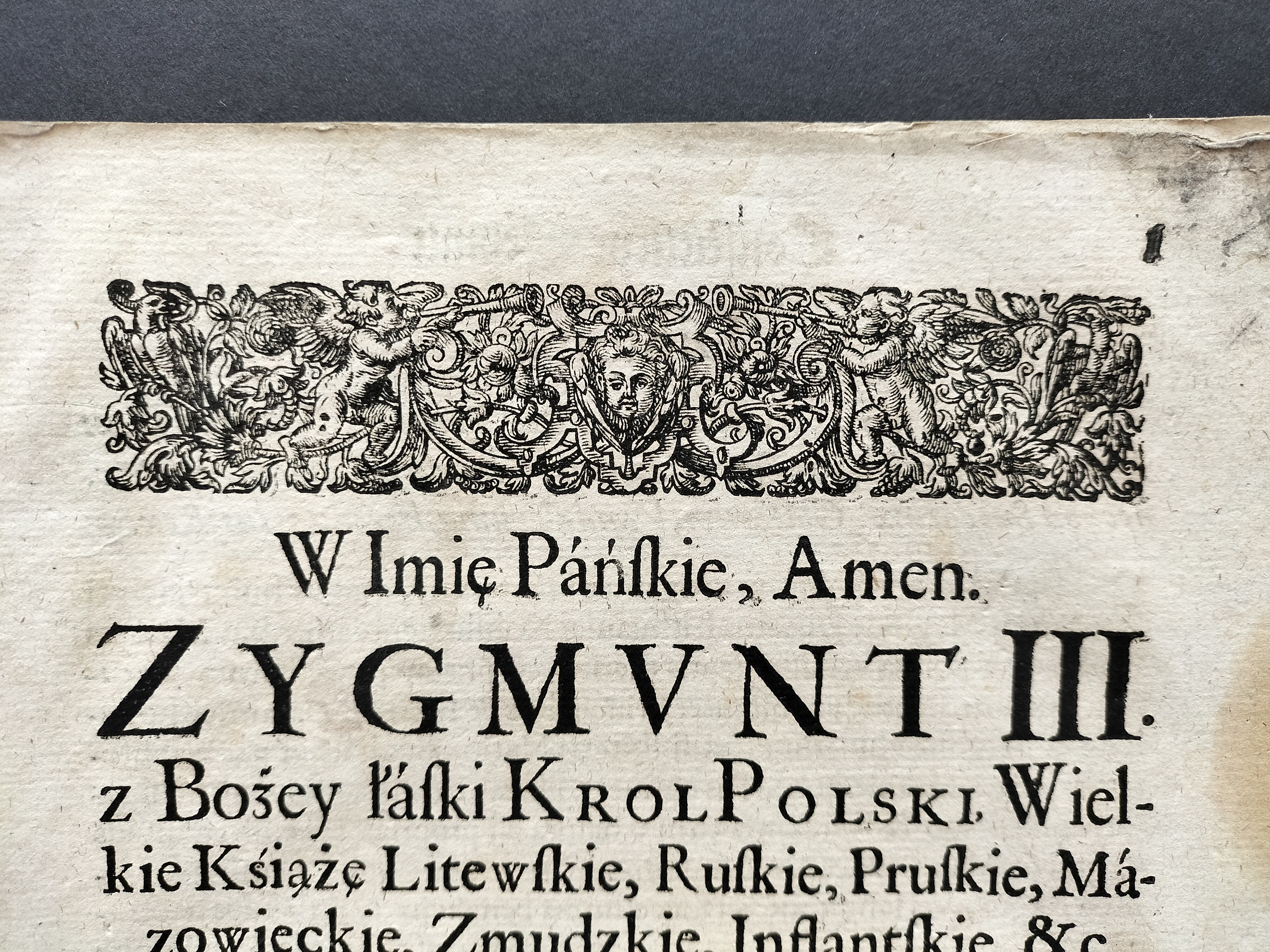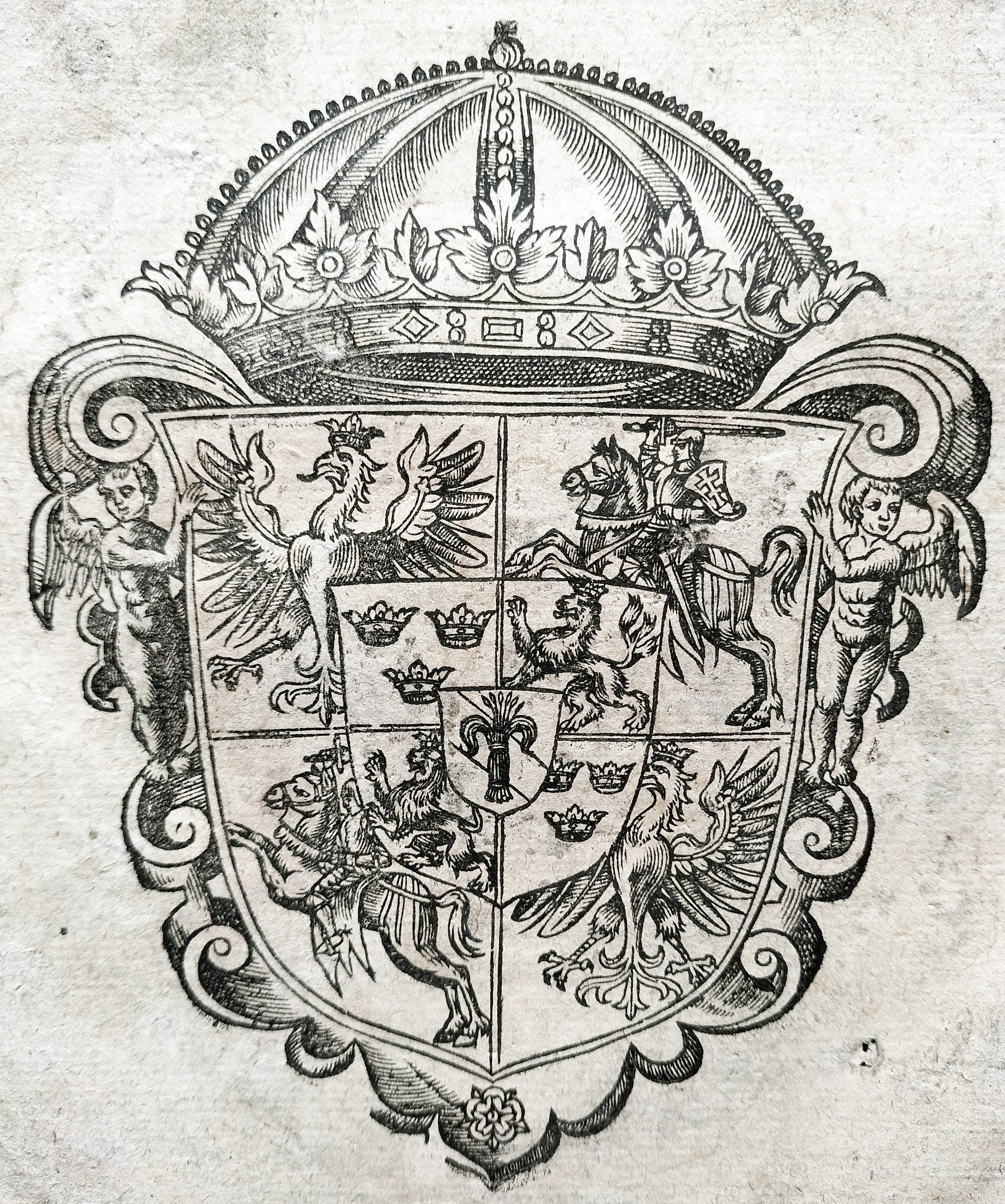 Na stronie tytułowej drzeworyt - Herb Rzeczypospolitej z herbem Wazów.