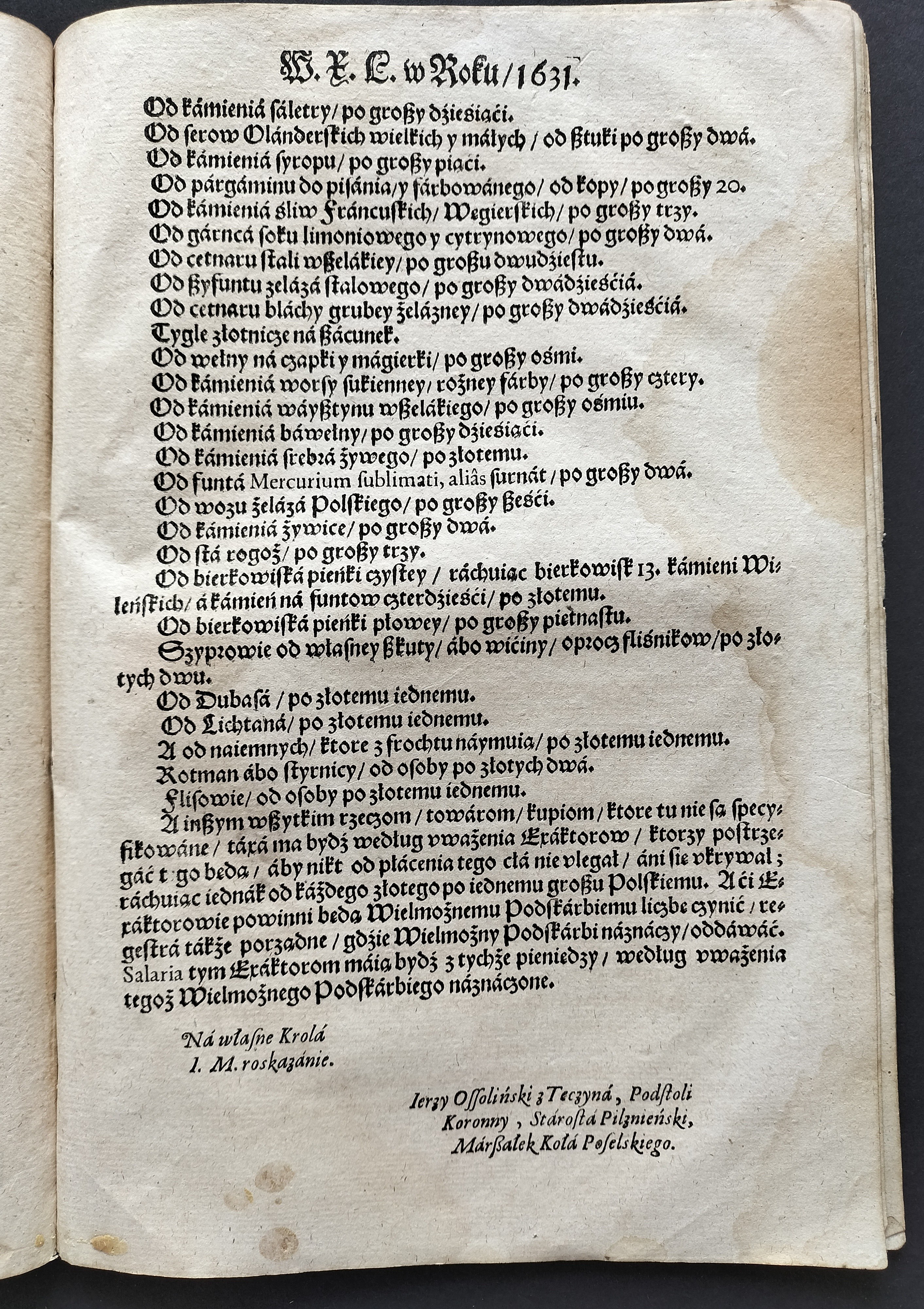 [Klocek] Konstytucje Sejmu & Uniwersał Poborowego & Instruktarz Celny & O Podatkach Rzeczpospolitej. Kraków [1631-1632]