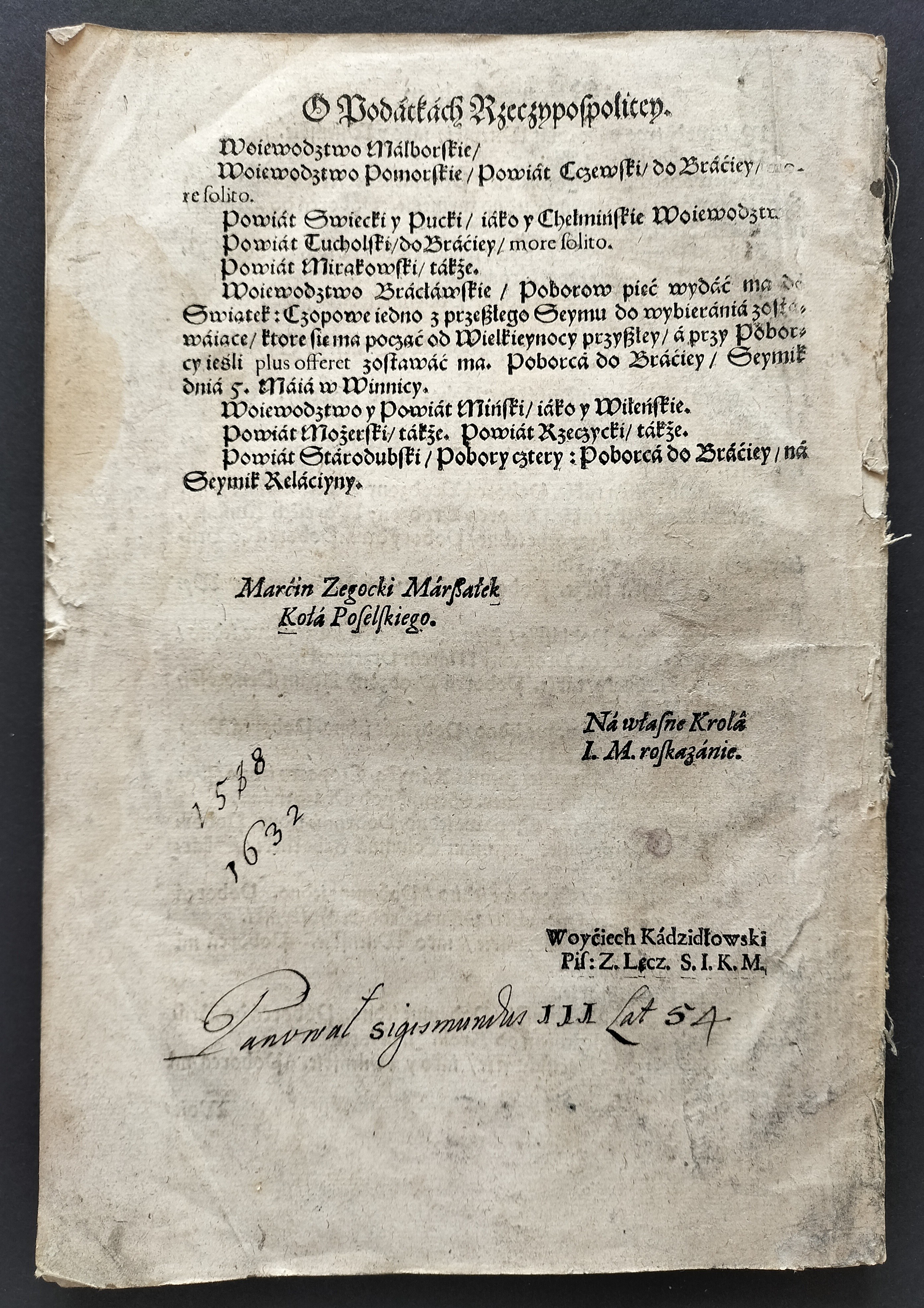 Na stronie ostatniej adnotacje w tym: "Panvn sigsmundus III lat 54"