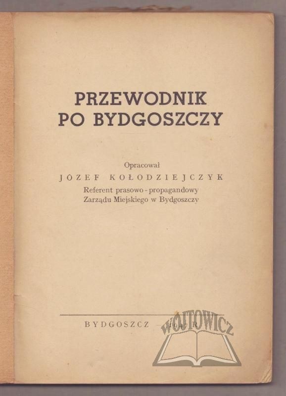 Oprac. (...). Bydgoszcz 1947. Czcionkami Drukarni Polskiej Spółdz. Wyd. "Zryw". 8 (mała), s. 140, ilustr. w tekście, rozkł. plan miasta, liczne ogłoszenia i reklamy, okł. brosz. oryg.