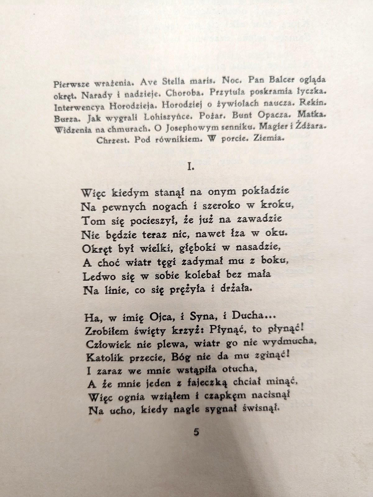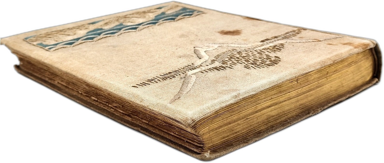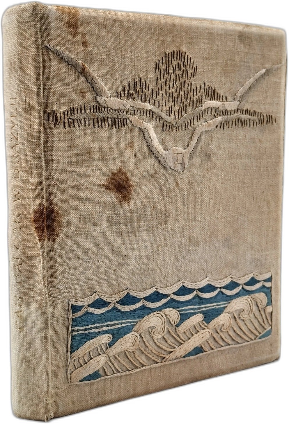 Oprawa twarda, ozdobna, płótno z haftowanym motywem morskim. Zachowane okładki broszurowa projektu Jana Bukowskiego .*