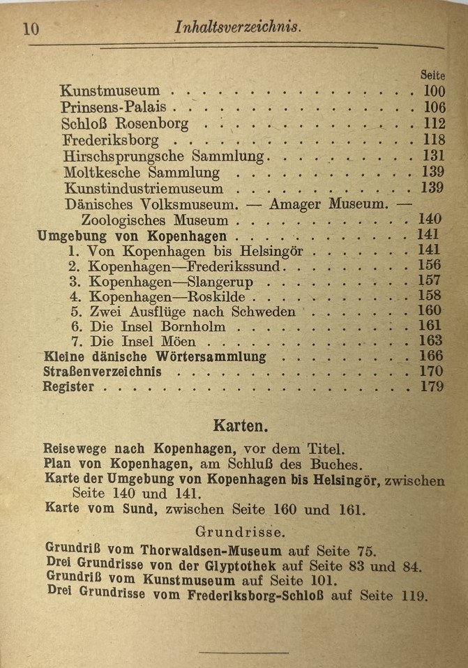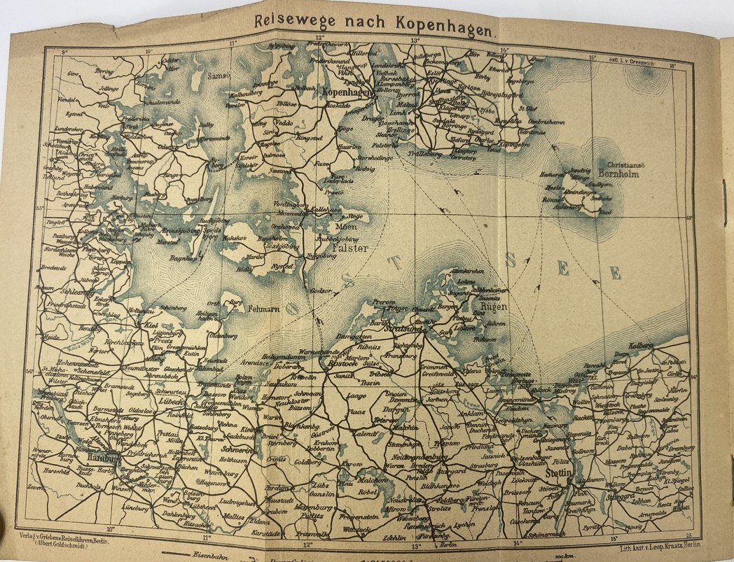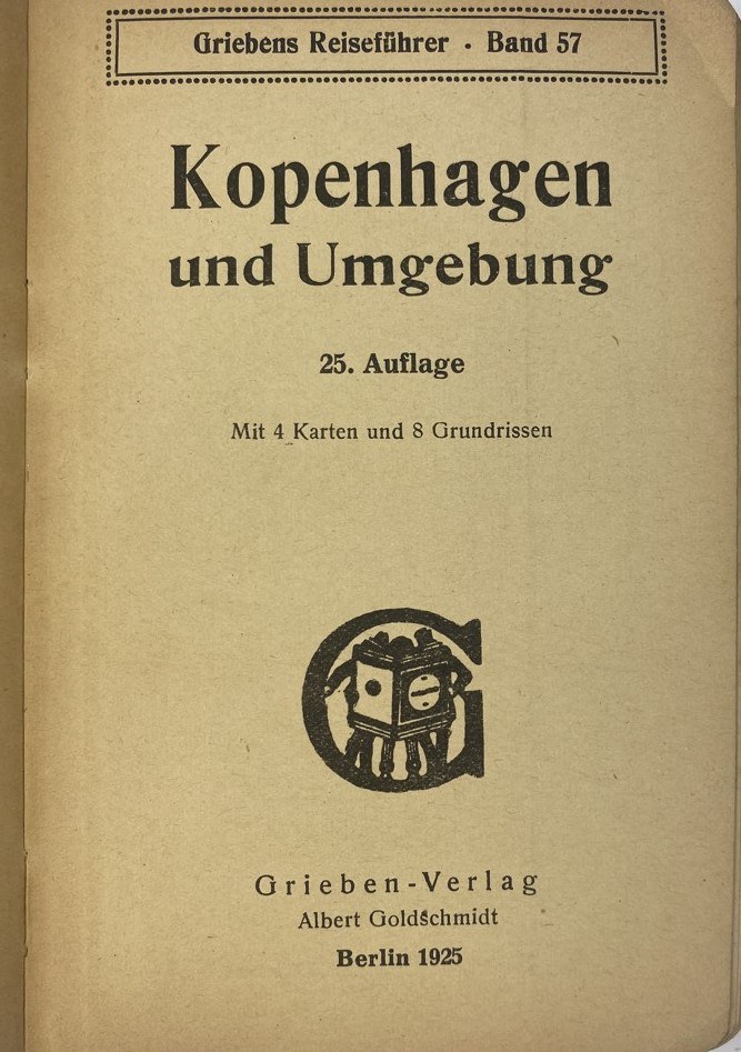 Kopenhagen und Umgebung Mit 4 Karten und 8 Grundrissen, Grieben - Verlag Albert Goldschmidt, Berlin 1925, s. 184, wymiary 10 x 15,5 cm, stan bardzo dobry.