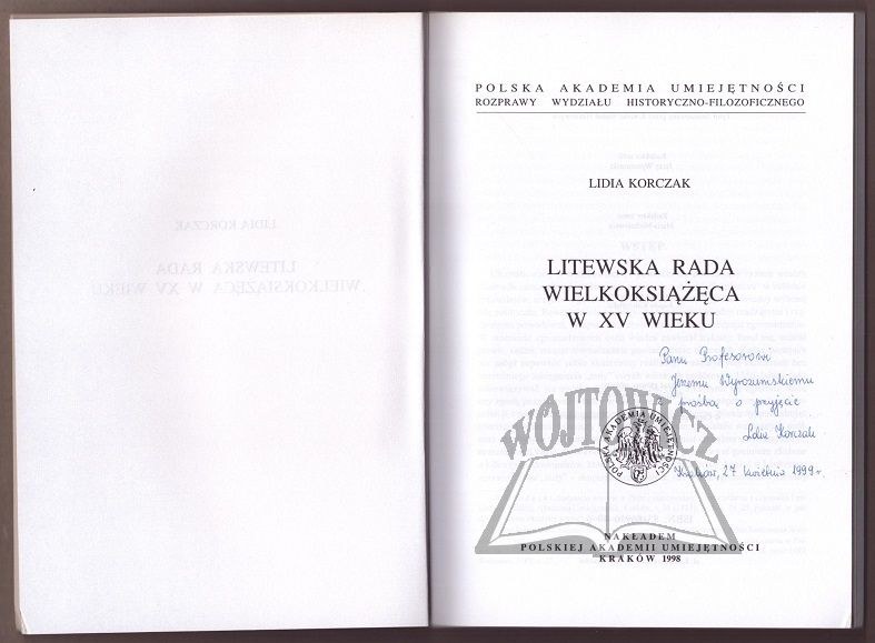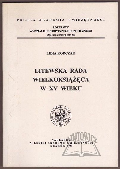 Kraków 1998. Polska Akademia Umiejętności. 8, s. 119, [1], okł. brosz. wyd. Stan niemal b. dobry. Rozprawy Wydziału Historyczno-Filozoficznego ogólnego zbioru tom 88. Dedykacja dla Prof. Jerzego Wyrozumskiego od Autora.