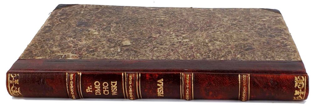 TWARDA OPRAWA PÓŁSKÓREK, ORYGINALNE OKŁADZINY, GRZBIET WSPÓŁCZESNY, WYMIENIONE WYKLEJKI, OBCIĘCIA KART BARWIONE