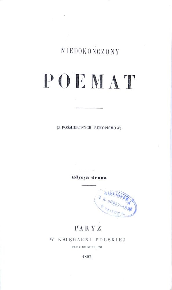 NIEDOKOŃCZONY POEMAT (Z POŚMIERTNYCH RĘKOPISÓW), Ed.2,