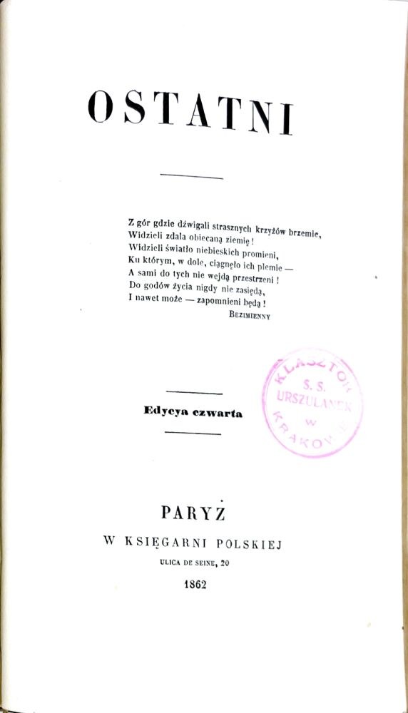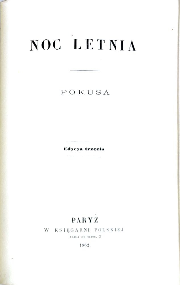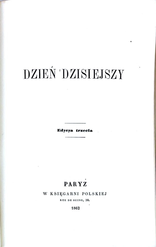 Paryż 1862-63, W Księgarni Polskiej, str. 180; 259; 133, [2]; 61; 8; 20; 13; 93; 31,11; format: 13,5x21 cm