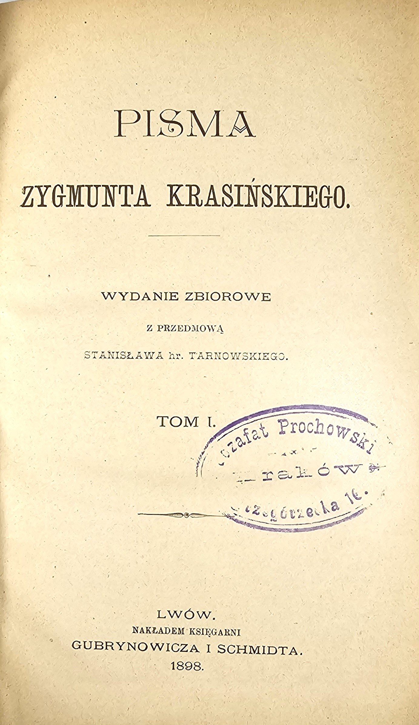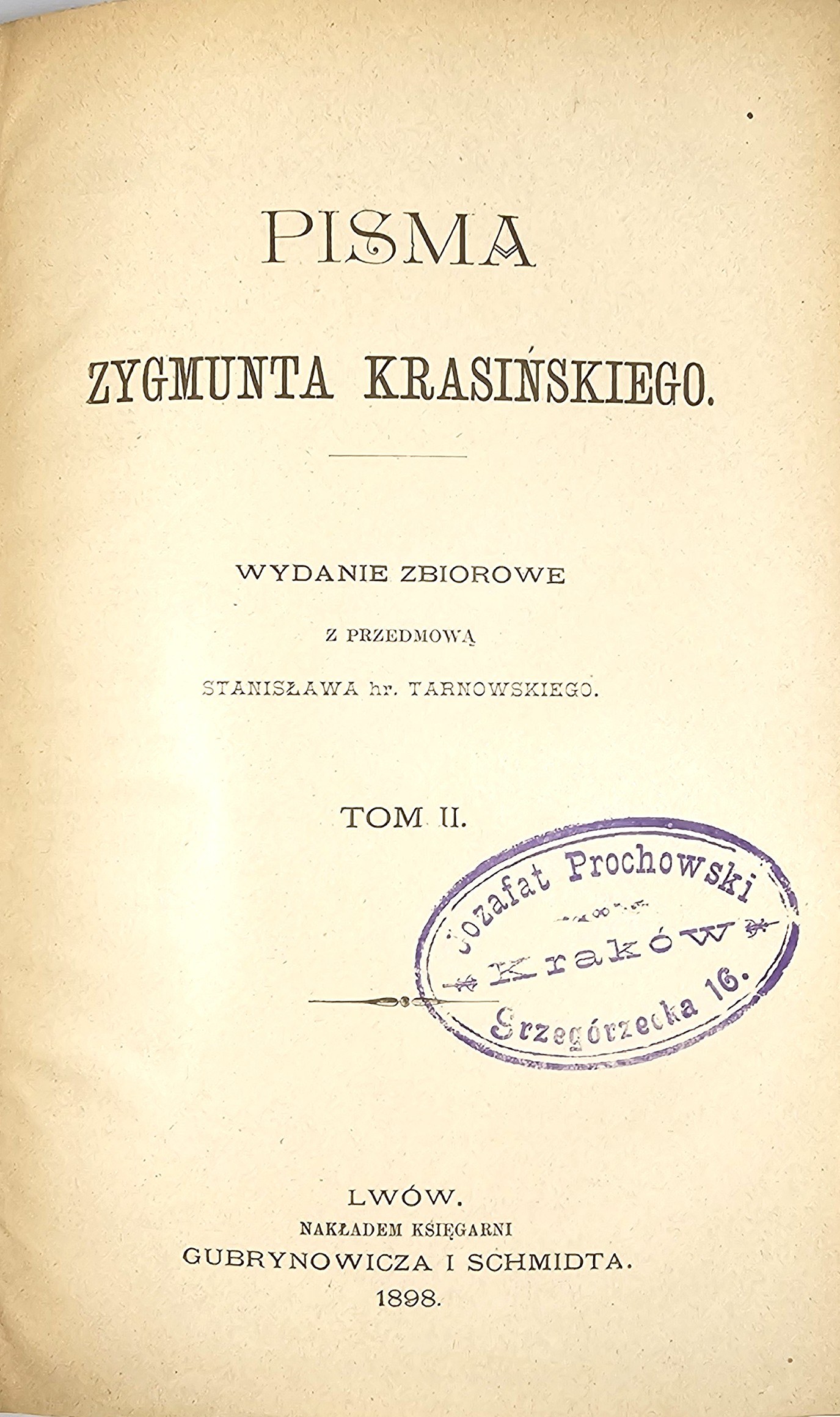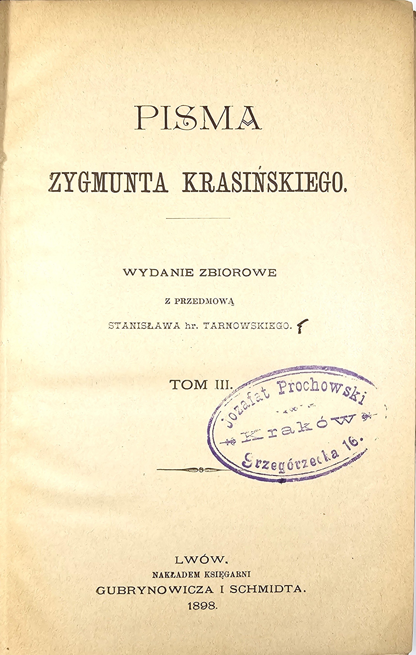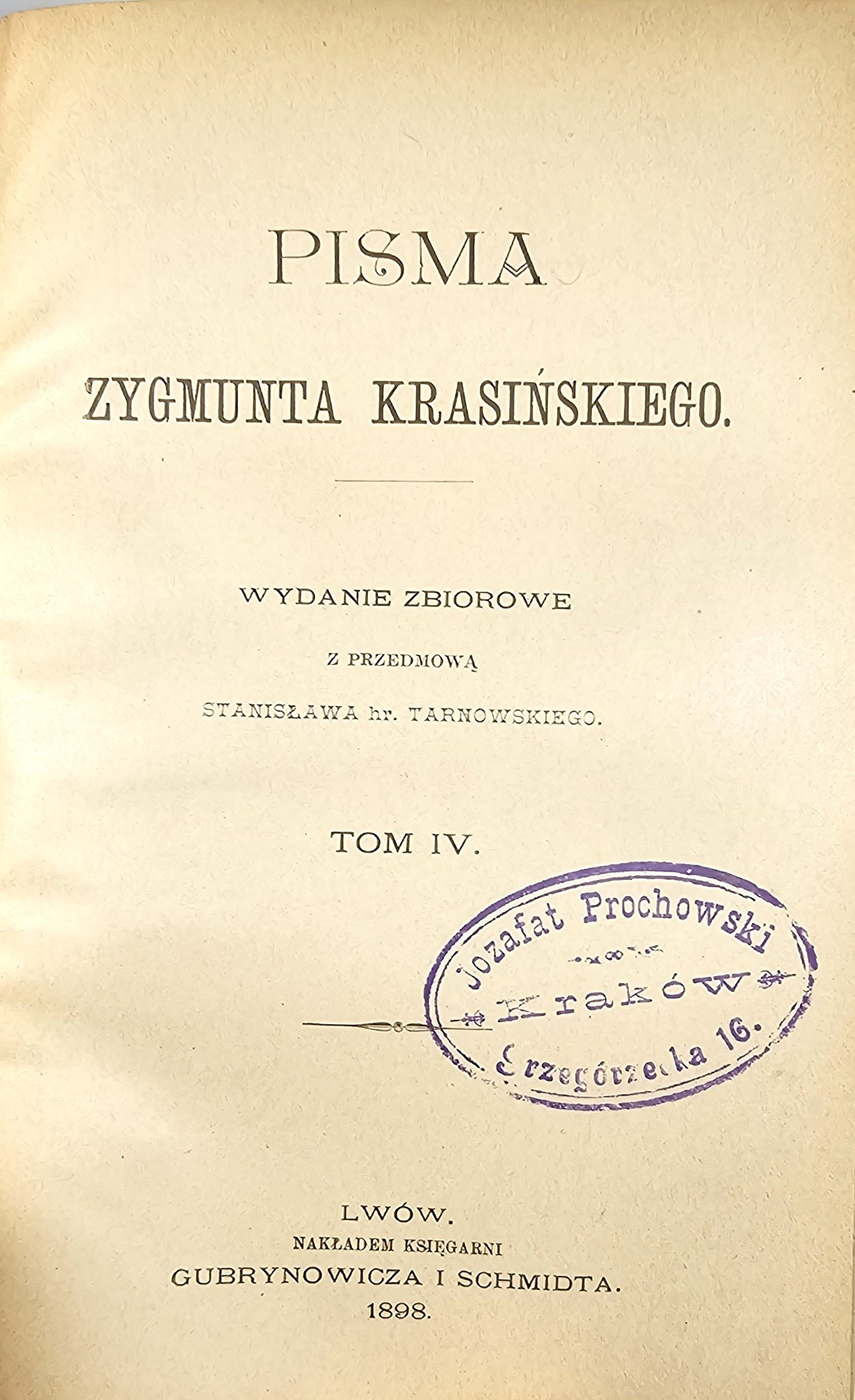 18.5 cm, s. [2], LVII, 359, [1]; [2], 409, [1]; [1], IV, 347; [1], 319; opr. pł. w 2 wol. Grzbiet w t. 2 poluzowany, 2 karty luźne, na str. tytuł. pieczęcie, poza tym stan dobry.
