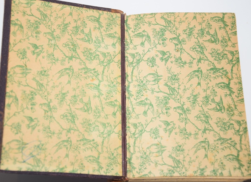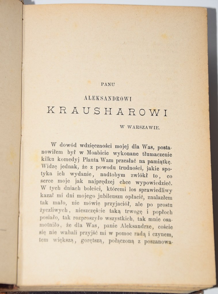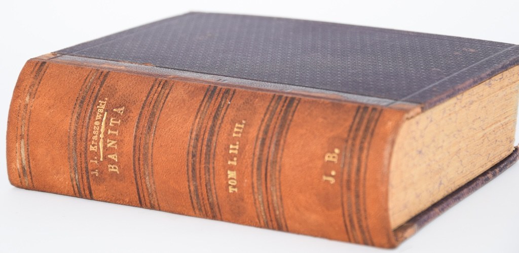 - Oprawa: twarda półskórek z epoki, złocenia na grzbiecie, ozdobne wyklejki, marmoryzowane brzegi kart