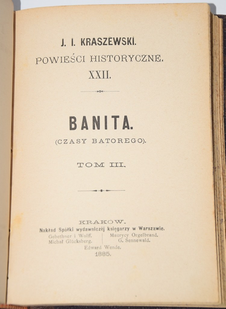 - Wydawnictwo: Nakład Spółki wydawniczej księgarzy w Warszawie. Gebethner i Wolff/Michał Glucksberg/Maurycy Orgelbrand/G. Sennewald