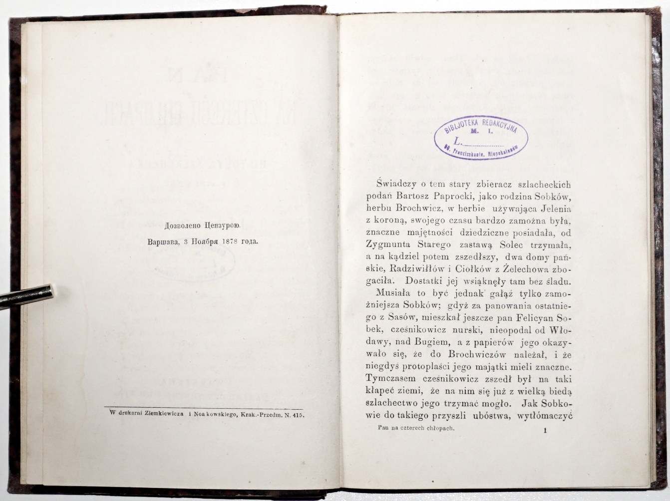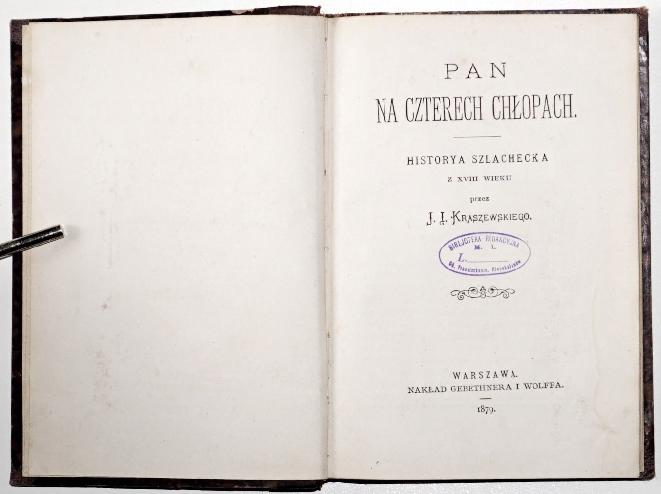 Pan na czterech chłopach : historya szlachecka z XVIII wieku / przez J. I. Kraszewskiego.