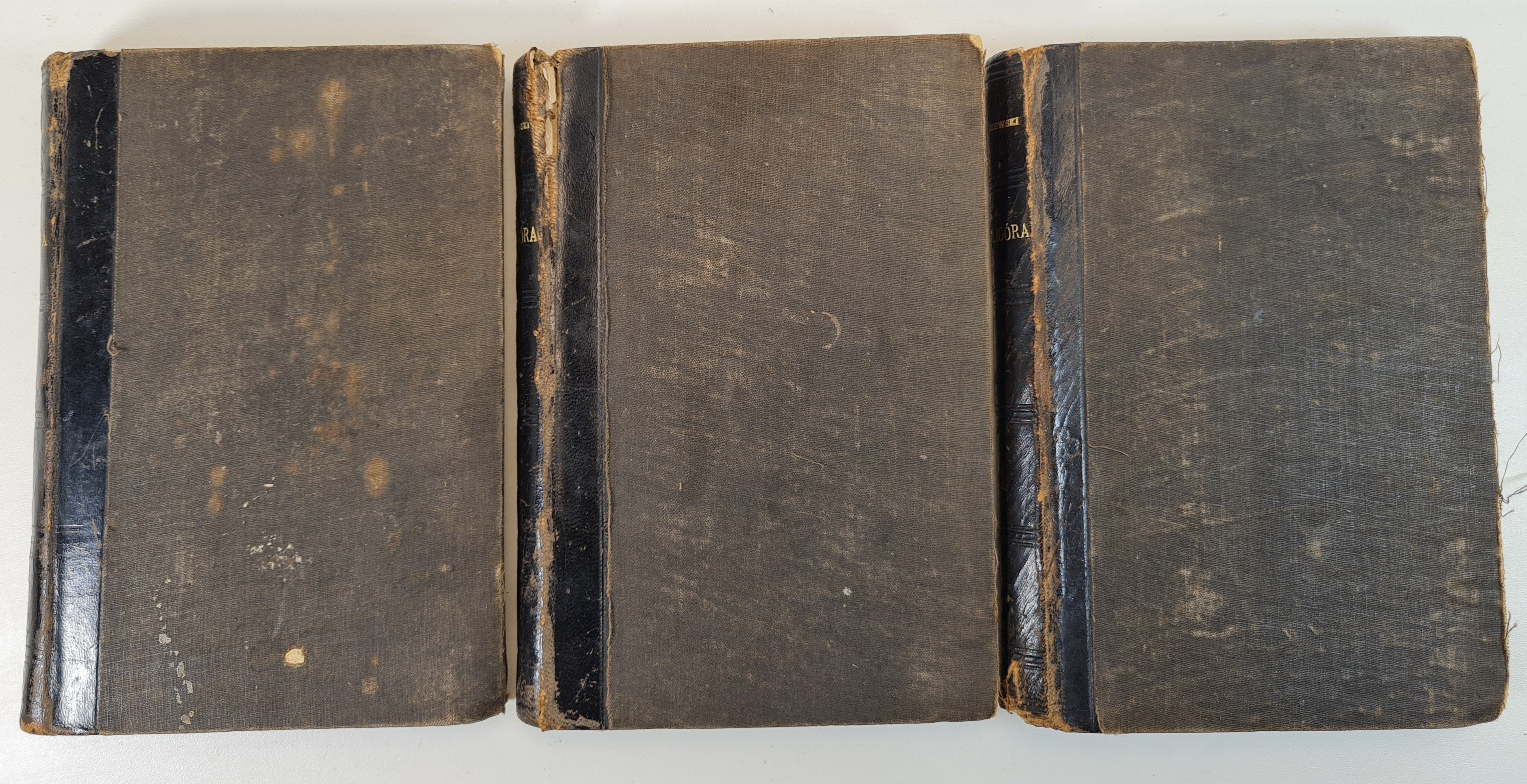 Nakład Spółki wydawniczej księgarzy w Warszawie, Kraków 1880. Wym.18x12,5 cm; stron 212, 209, 213. Okładka półskórek (otarcia, wytarcia, zabrudzenia okładek, pęknięcia krawędzi i niewielkie ubytki w grzbietach). Nieznaczne zabrudzenia kart. Podpisy własnościowe na str. tyt., notatki ołówkiem na tylnej wyklejce.