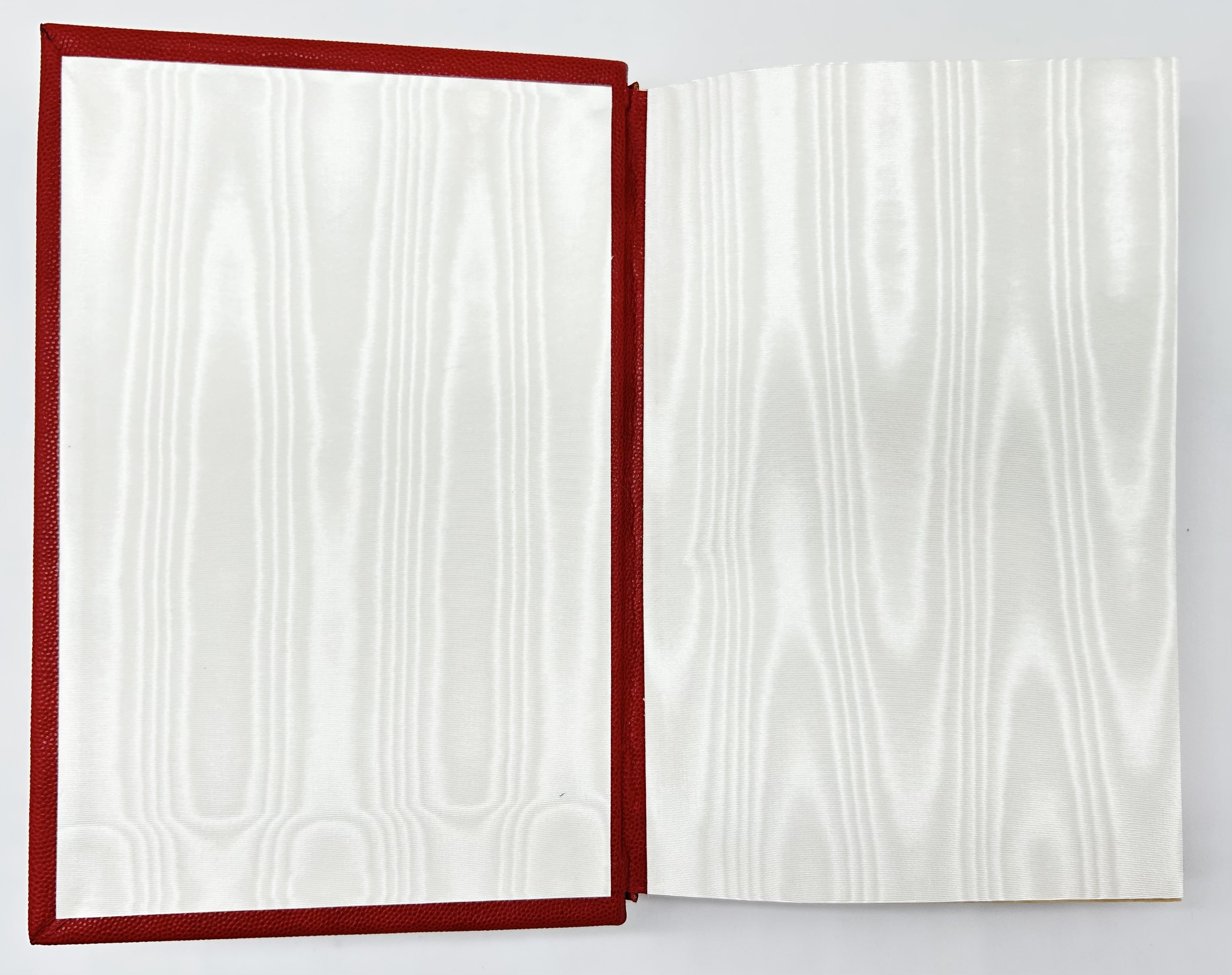 Współczesna oprawa introligatorska w pełną skórę (sygnowana Milla Arte). Na przedniej okładce każdego z tomów złocona tytulatura, portret autroa oraz adres wydawnictwa. Całość zamknięta kompozycyjnie w secesyjną ramkę. Grzbiety zrobione na wzór wydawniczej oprawy Pugeta. Górne obcięcia kart malowane.