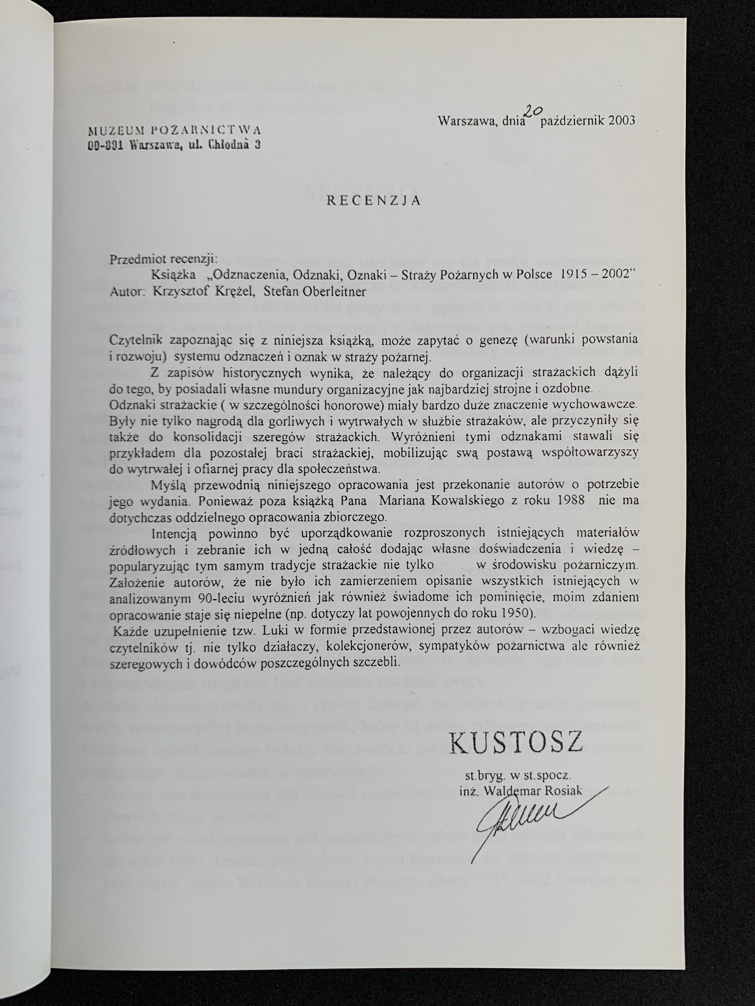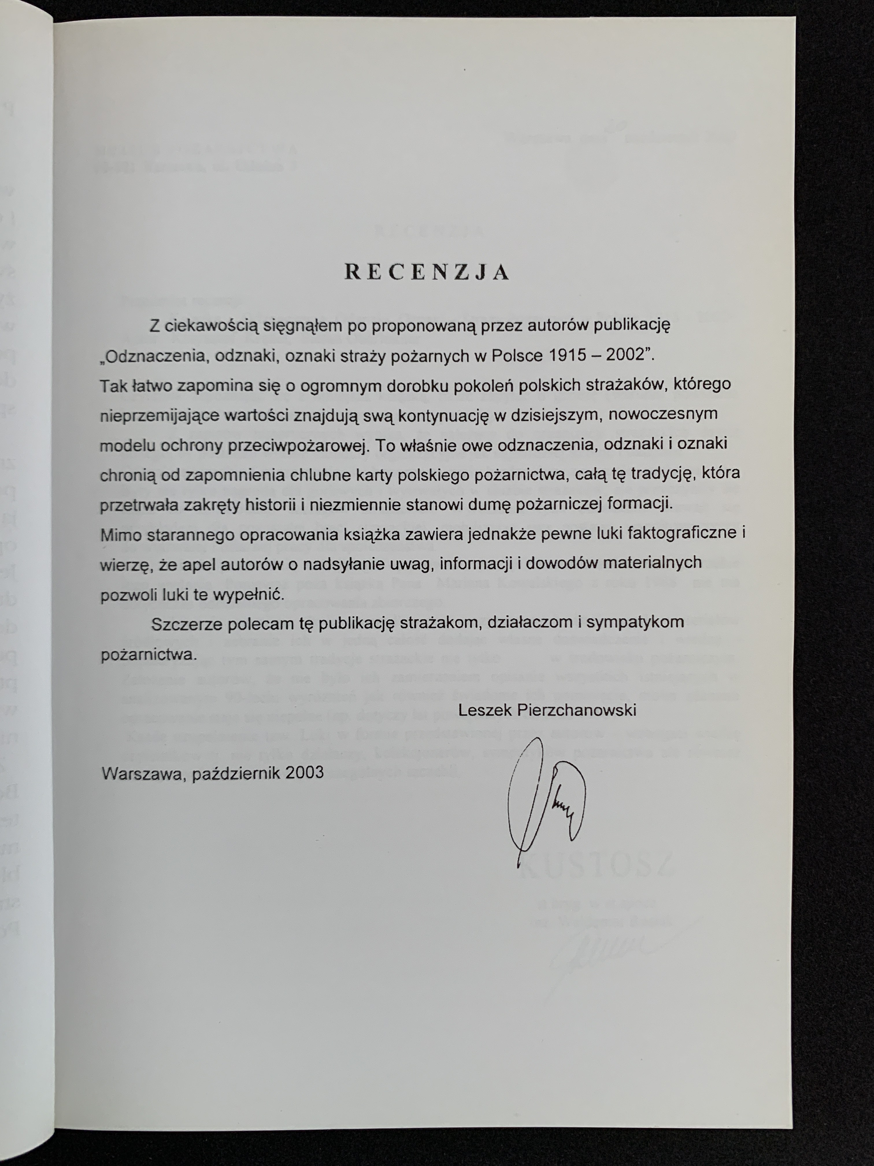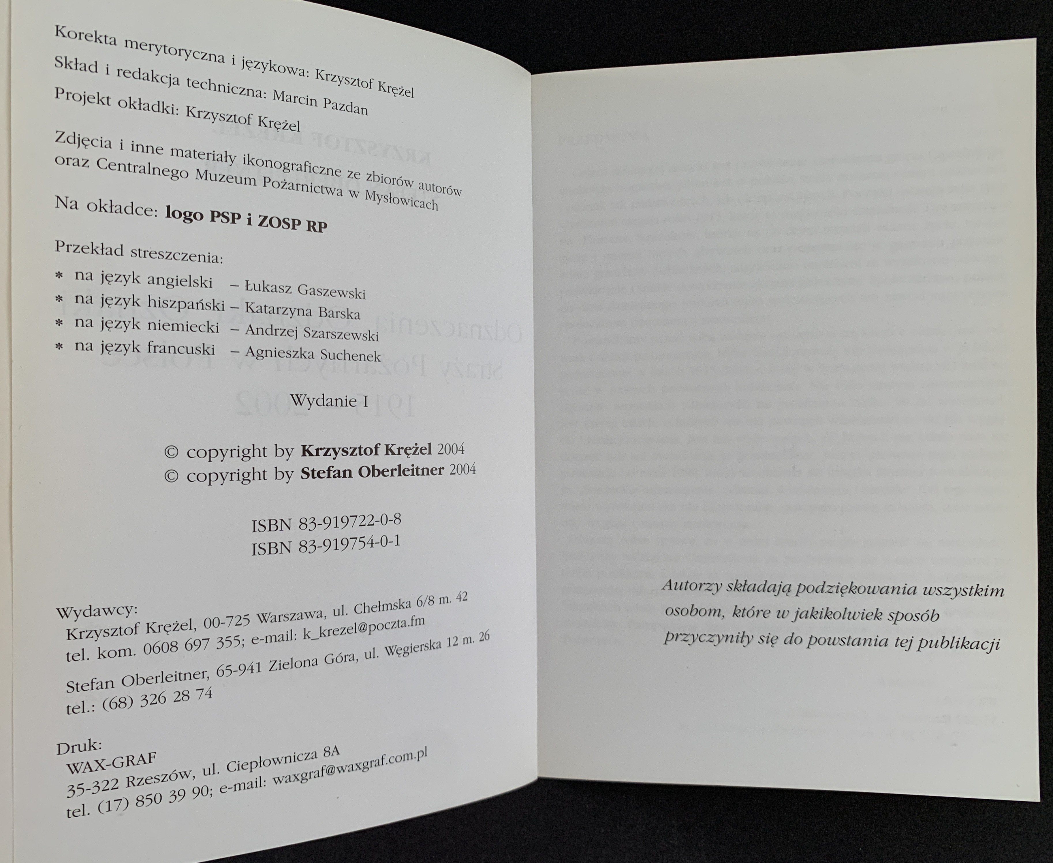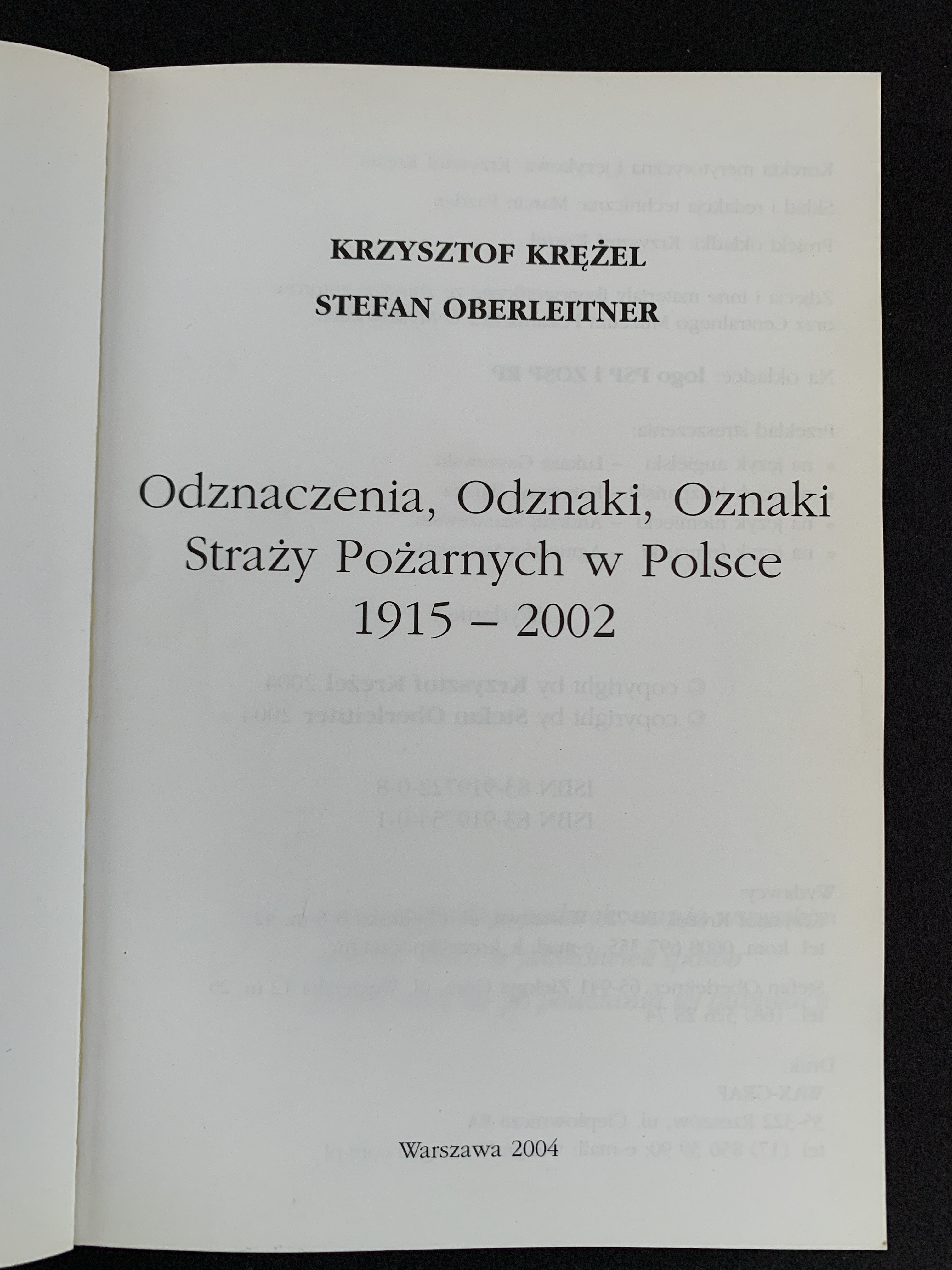 KRĘŻEL K. & OBERLEITNER S. - Odznaczenia, Odznaki, Oznaki Straży Pożarnych w Polsce 1915-2002. Warszawa 2004.