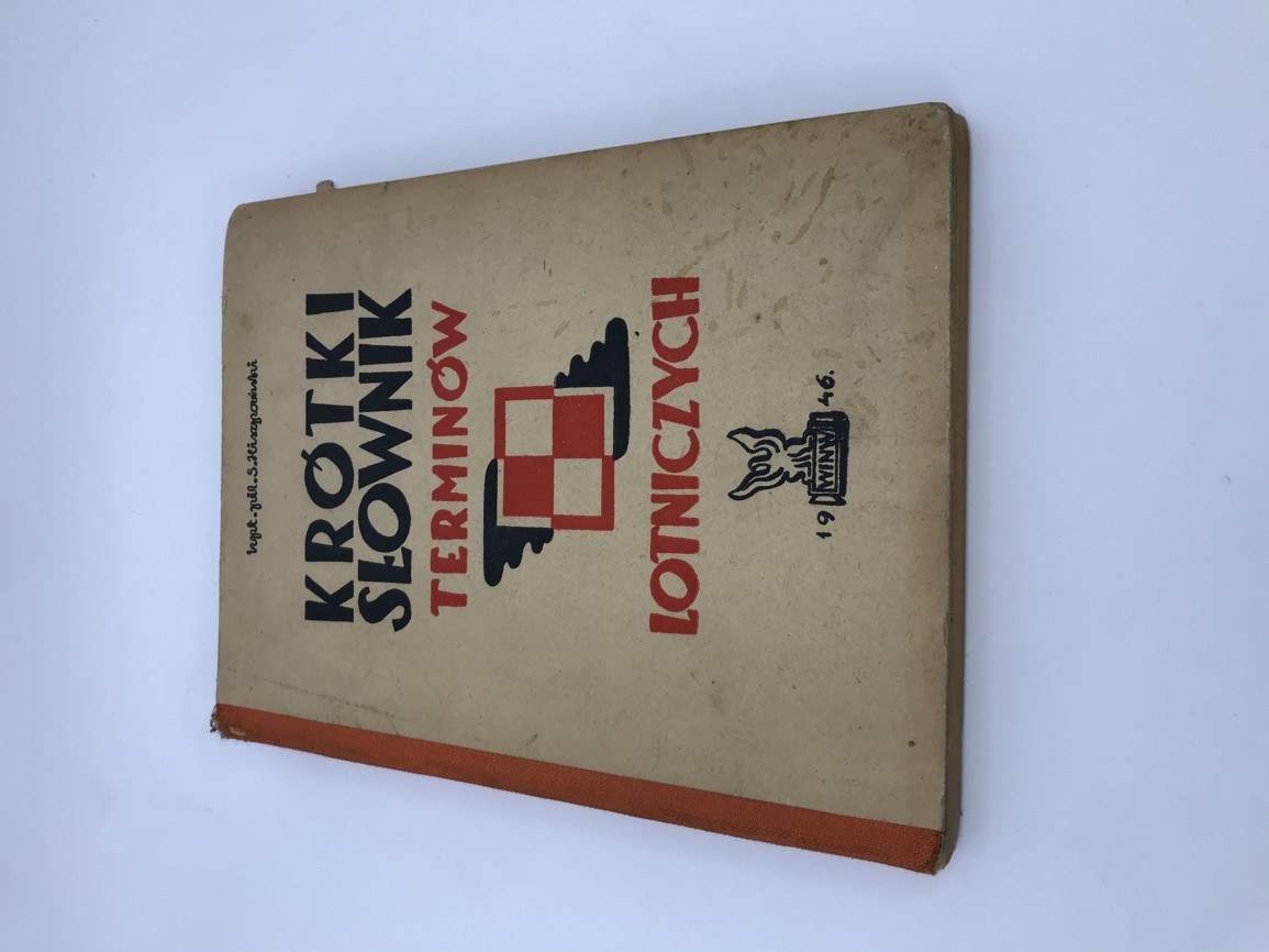 Hiszpański S. Krótki Słownik Terminów Lotniczych, Wojskowy Instytut Naukowo-Wydawniczy, Warszawa 1947, s. 192, format 17 x 12,5 cm, okładka papierowa z płóciennym grzbiecikiem, stan dobry.