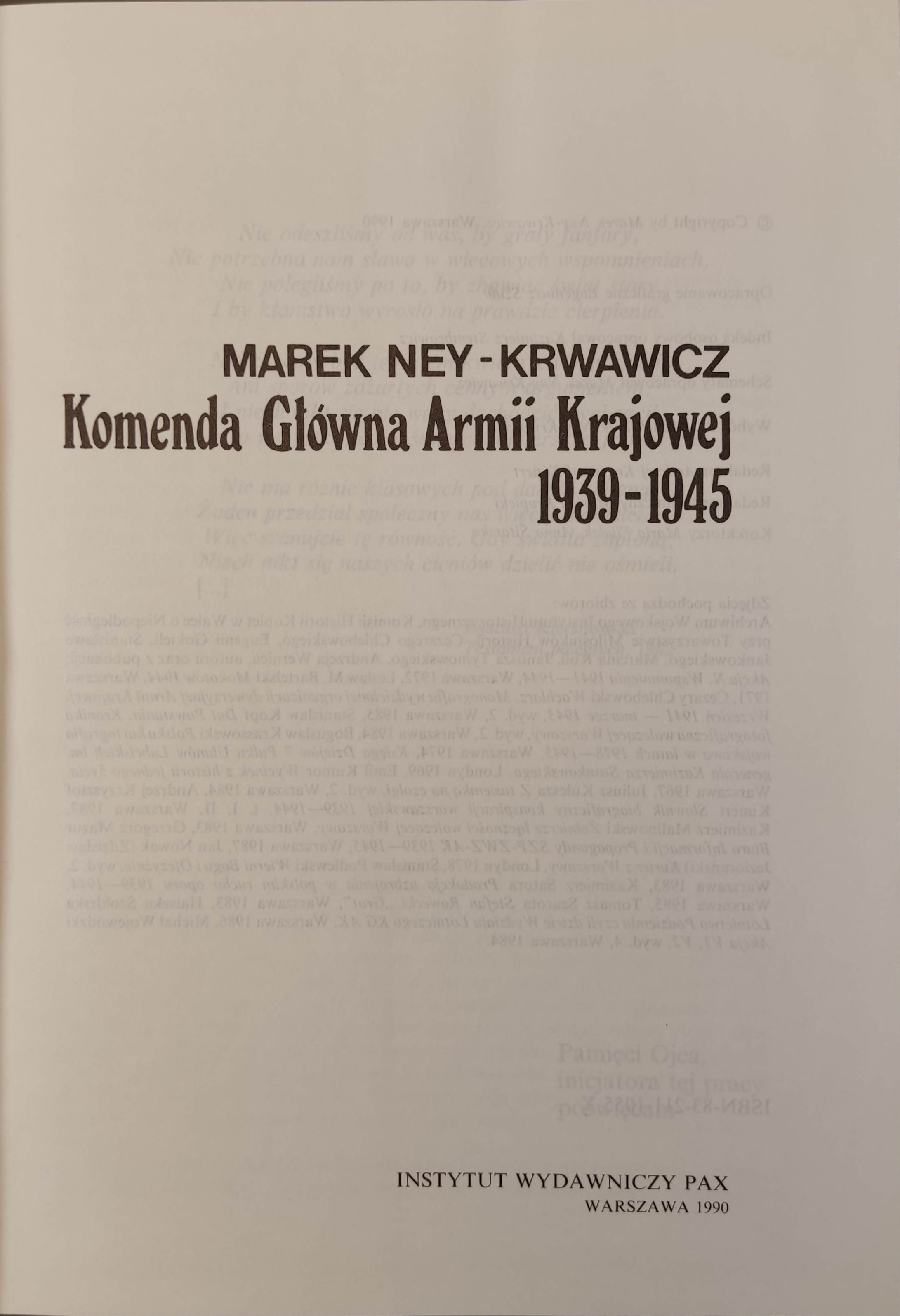 KRWAWICZ-NEY Marek - KOMENDA GŁÓWNA ARMII KRAJOWEJ 1939-1945