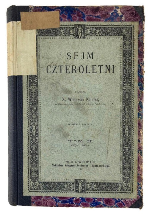 Dzieła Ks. Waleryana Kalinki Tom VIII. Sejm Czteroletni Tom II - Część II. Księga V (wydanie czwarte), książka wydana w 1896 roku w Krakowie nakładem Księgarni Spółki Wydawniczej Polskiej