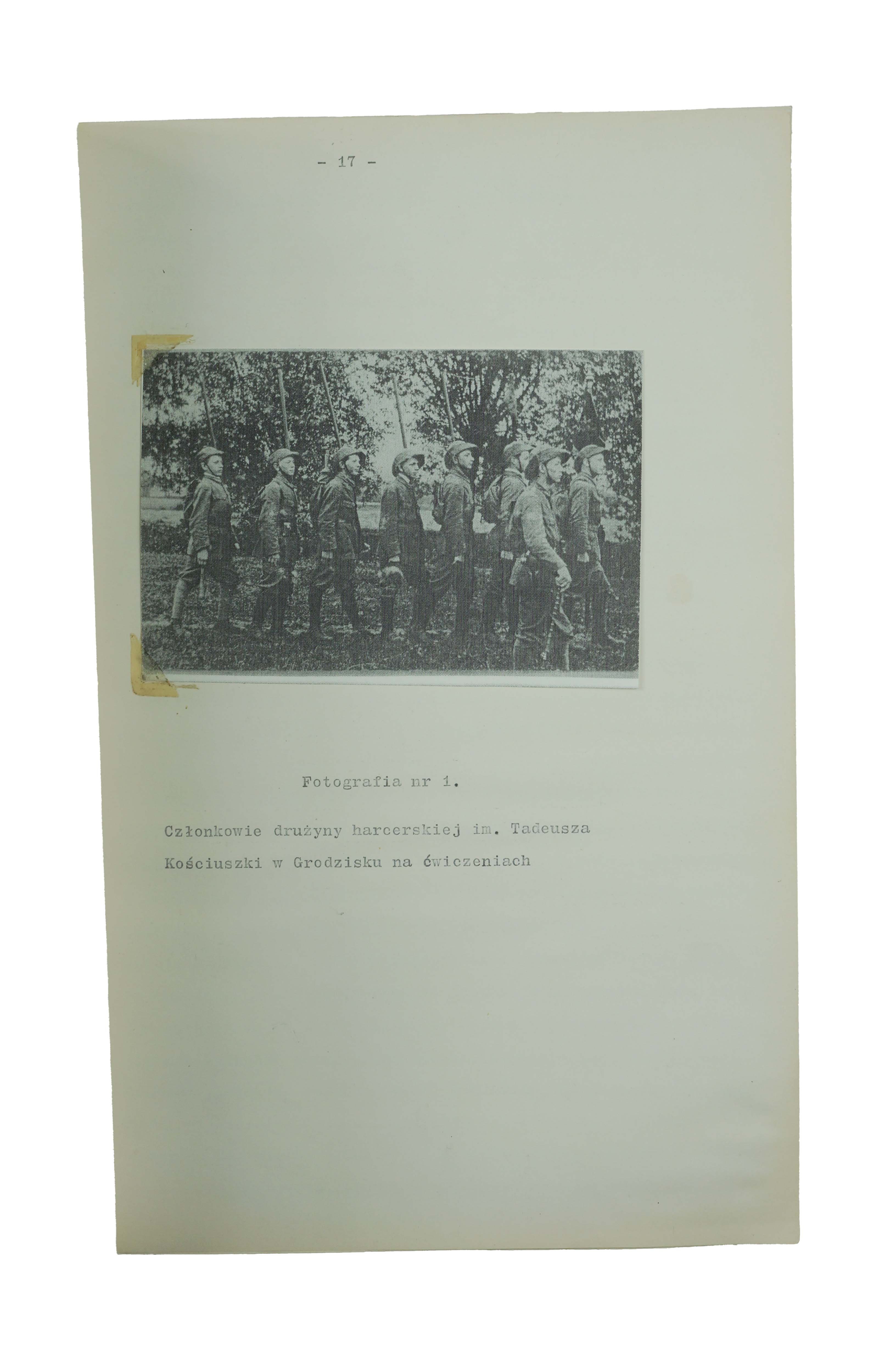 maszynopis, w tekst wklejone liczne mapki oraz odbitki fotograficzne i kserokopie fotografii