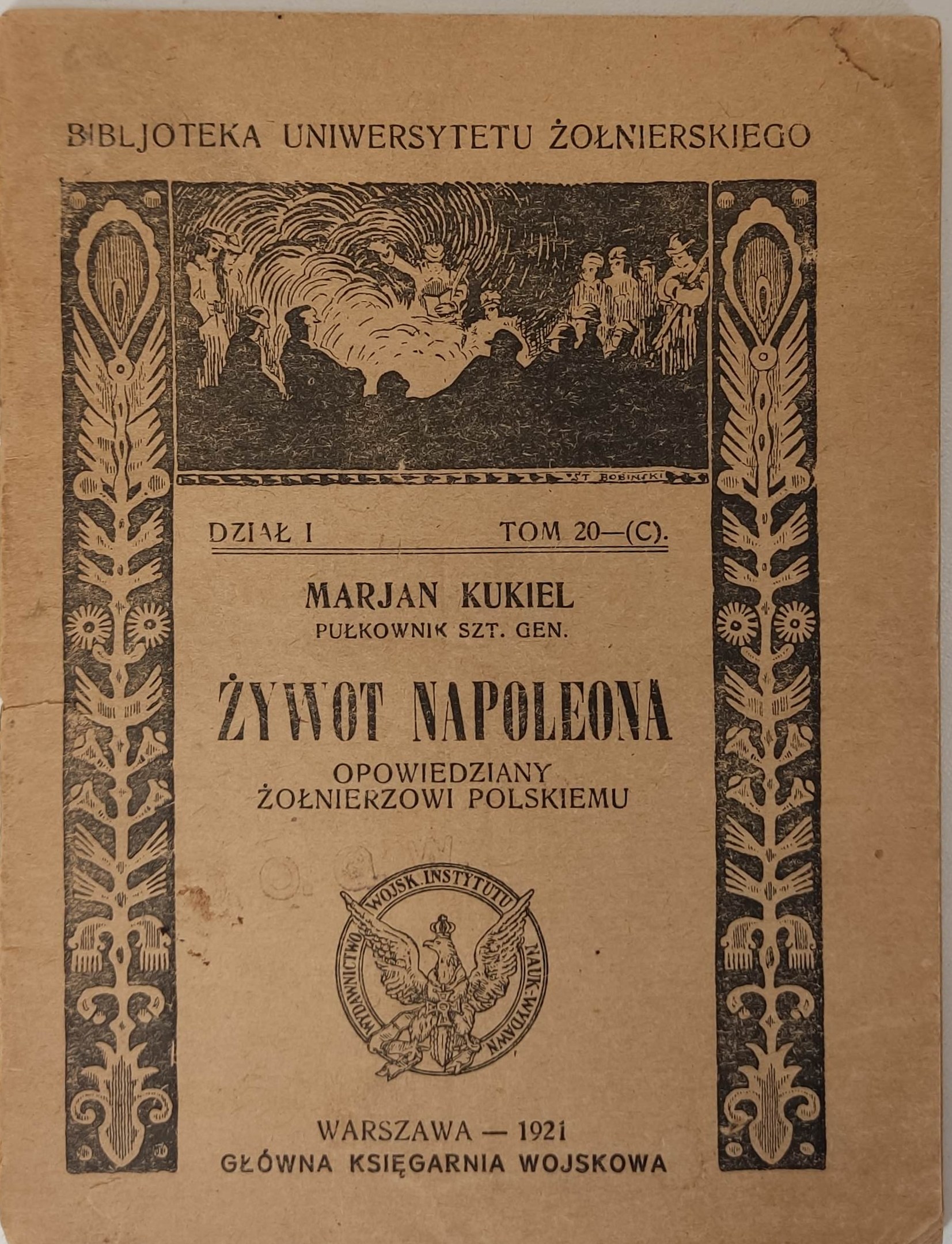 Główna Księgarnia Wojskowa. Bibljoteka Uniwersytetu Żołnierskiego. Dział 1. Tom 20-(C). Warszawa 1921. Wym. 14,5x11cm; stron 48. Oprawa broszurowa(nieznaczne otarcia, naddarcie grzbietu, przybrudzenia, niewielki ubytek rogu).