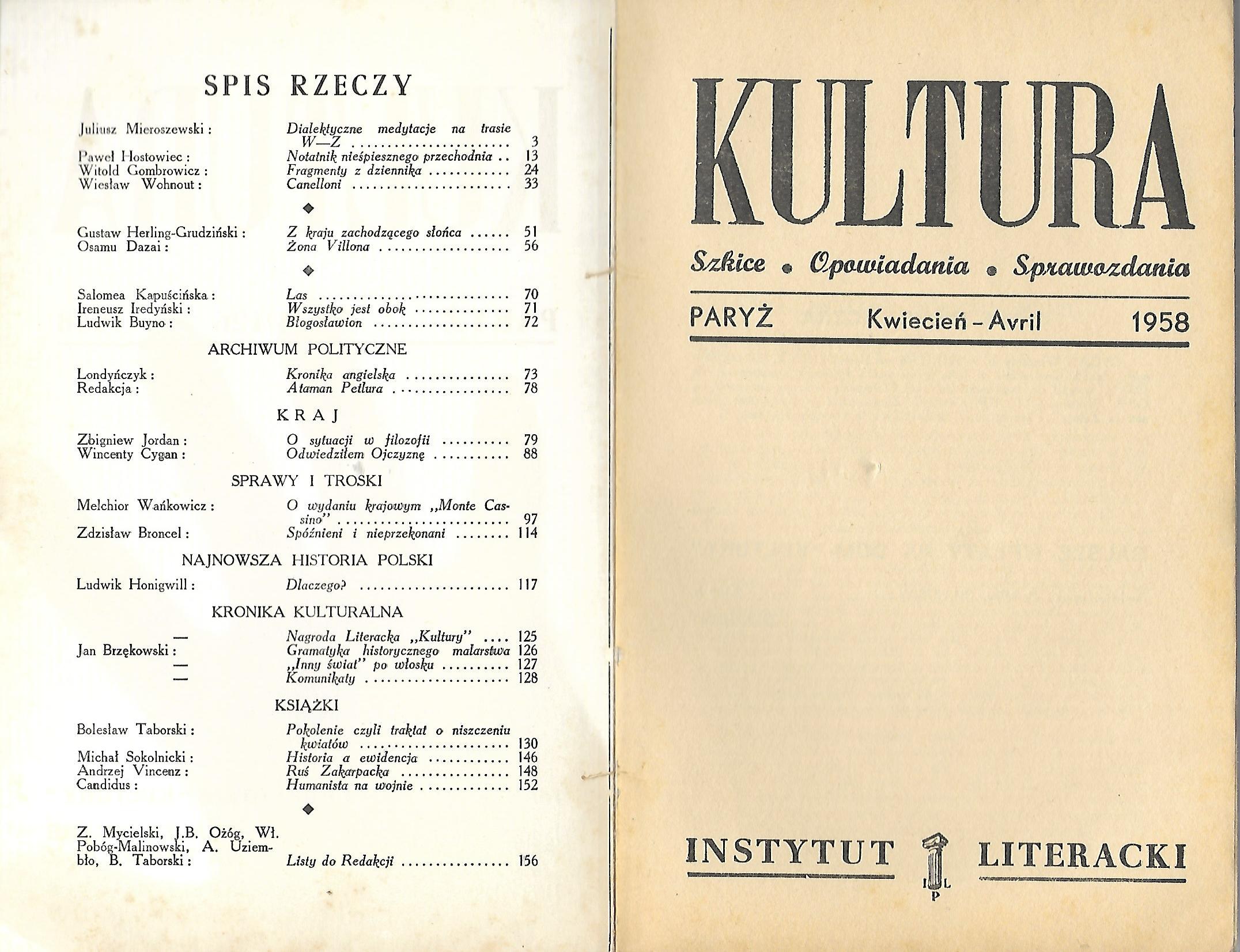 Instytut Literacki, Paryż 1958. Format 21,5x13,5cm; stron 160.Oprawa:broszura.Nieliczne przybrudzenia – stan dobry.