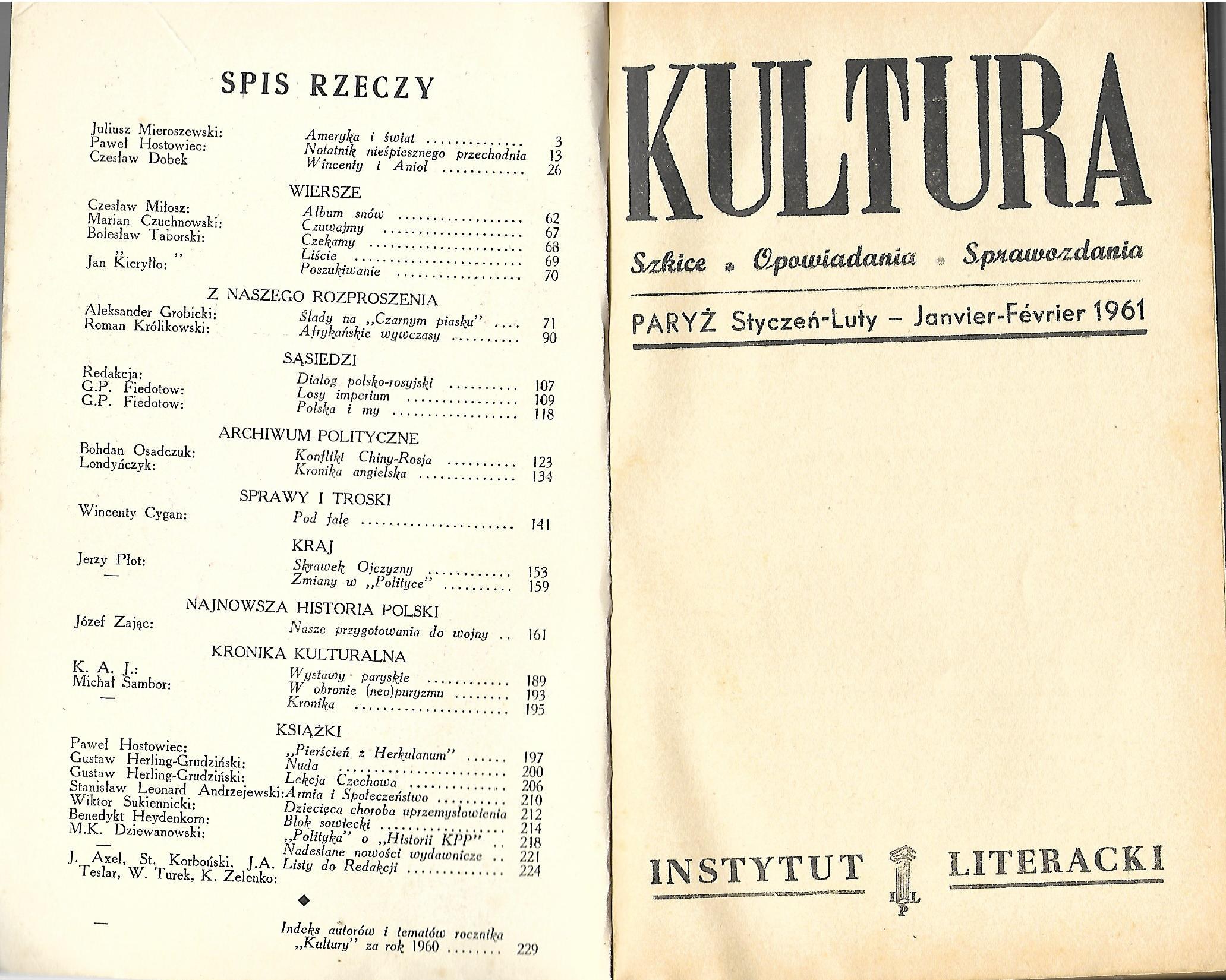 Instytut Literacki, Paryż 1961. Format 21,5x13,5cm; stron 240.Oprawa:broszura.Nieliczne przybrudzenia/zaplamienia – stan dobry.