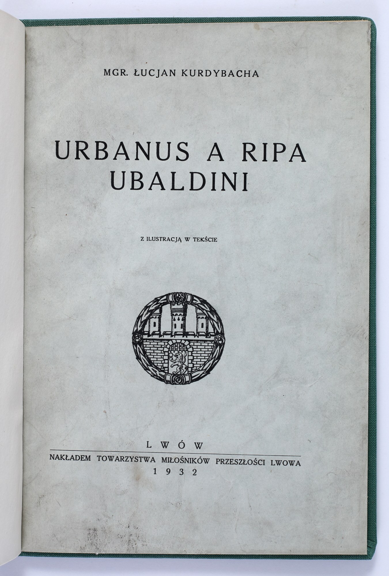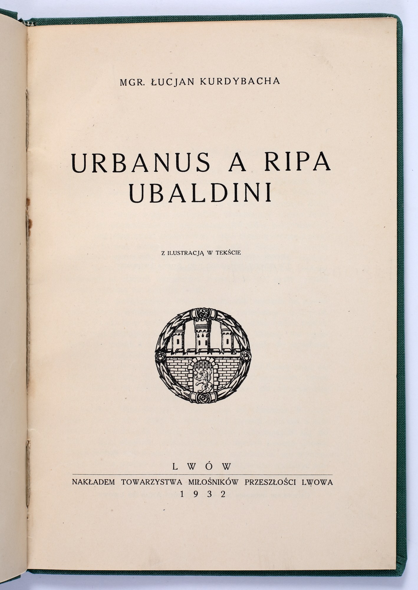 KURDYBACHA mgr. Łucjan - Urbanus A Ripa Ubalandi. Z ilustaracją w tekście. Lwów 1932. Nakładem Towarzystwa Miłośników Przeszłości Lwowa.