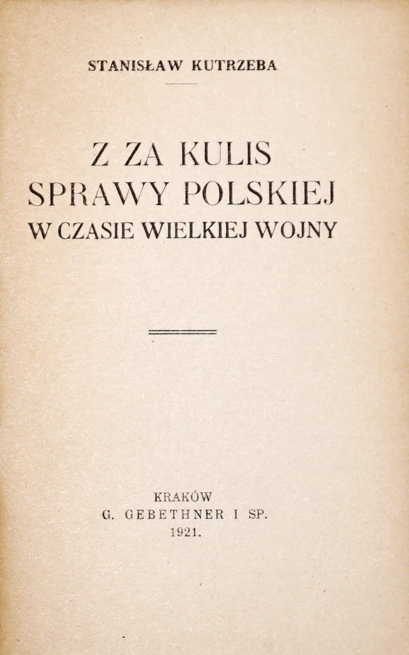 Z za kulis sprawy polskiej w czasie wielkiej wojny / Stanisław Kutrzeba.