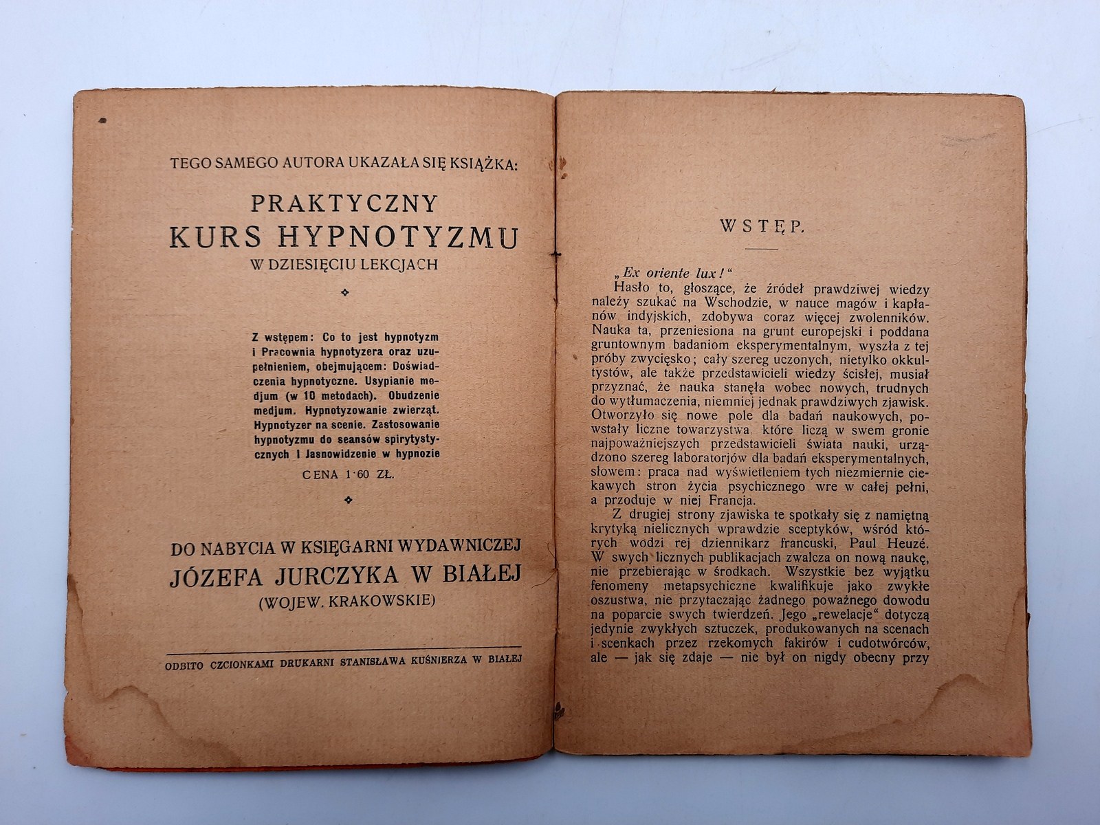 Oprawa miękka, broszura. Ślad po zamoknięciu na okładce i prawym dolnym narożniku kart. Poza tym stan dobry. Blok spójny.