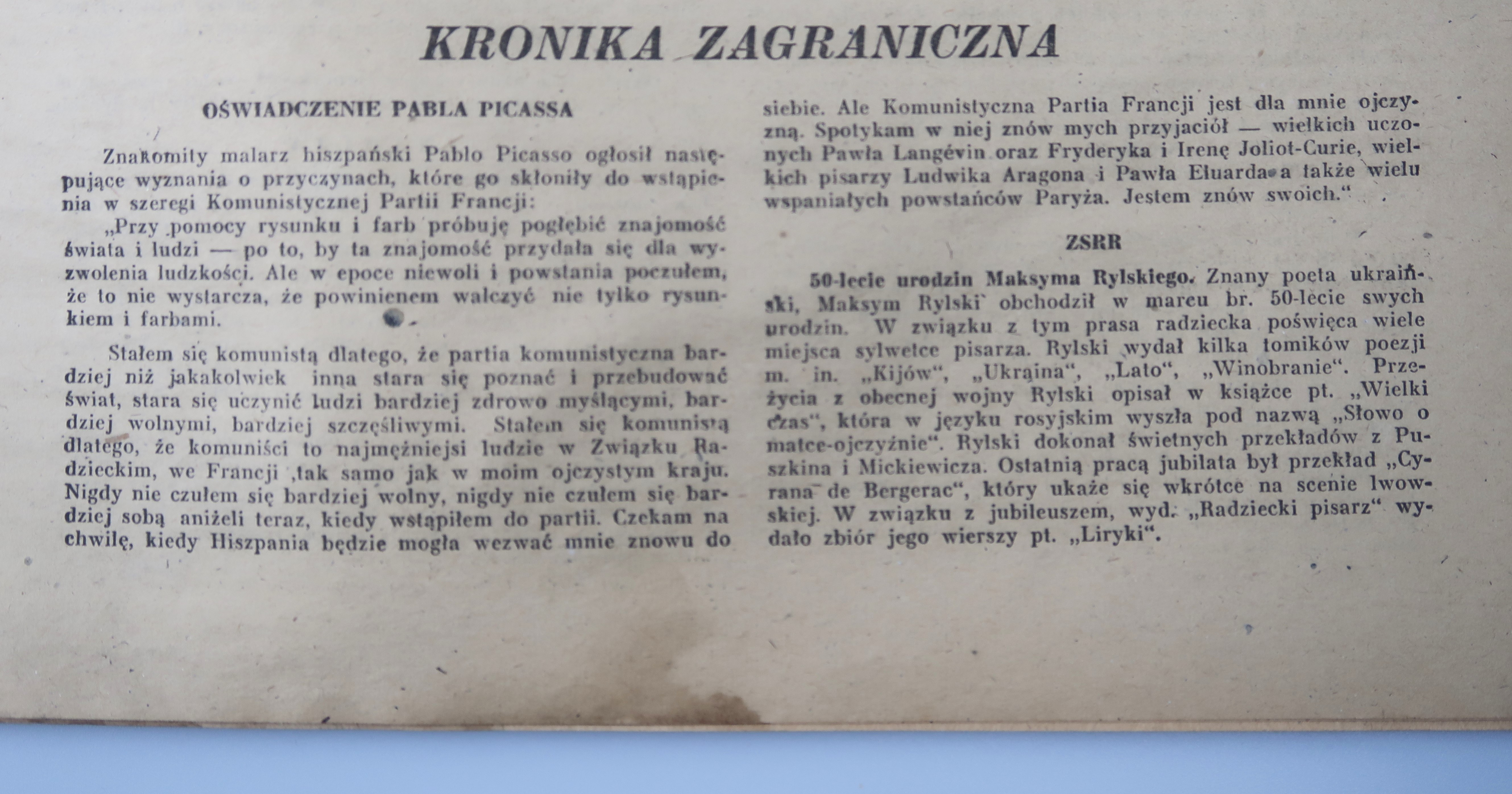 Wyd. Czytelnik, Rok I. Nr 1. 1.VI.1945, str. 24, 23 x 30,5; pieczęć pobiblioteczna. Strony pożółkłe, lekkie przybrudzenia, środkowa stronica luzem.