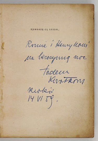 KWIATKOWSKI T. - Donoszę Ci, Luizo. 1959. Dedykacja autora.