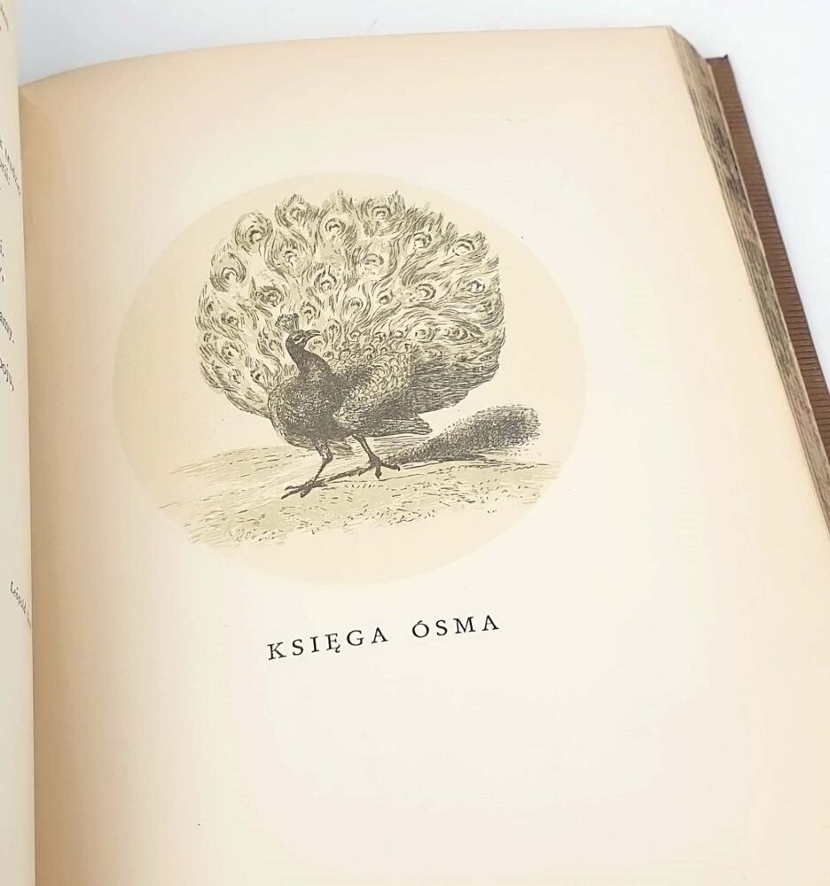 TWARDA OPRAWA PEŁNA SKÓRA WSPÓŁCZESNA. OKŁADKI Z OZDOBNĄ BORDIURĄ. GRZBIET Z WYPUKŁYMI ZWIĘZAMI,Z SZYLDZIKAMI I BOGATYMI TŁOCZENIAMI. WYKLEJKI MARMORYZOWANE, OBCIĘCIA KART MARMORYZOWANE TYM SAMYM WZOREM. WNĘTRZA OKŁADEK WYKOŃCZONE ŚLEPOTŁOCZONĄ ROLKĄ. ZACHOWANA PRZEDNIA CZĘŚĆ WYDAWNICZEJ OBWOLUTY.