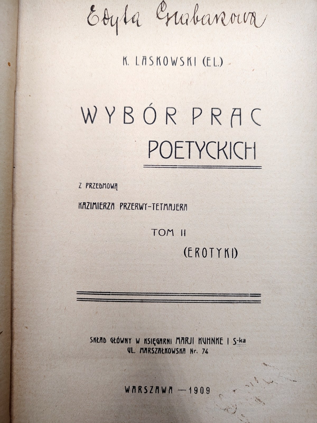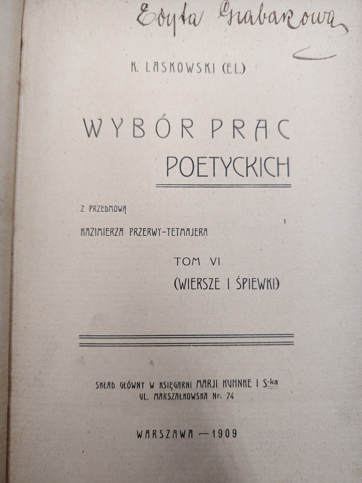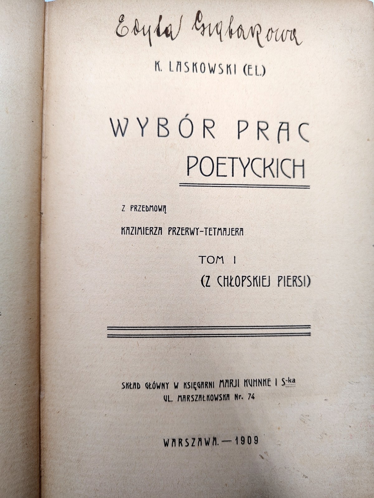 Laskowski Kazimierz - Wybór prac Poetyckich, przedmowa Kazimierz Przerwa Tetmajer, Warszawa 1909