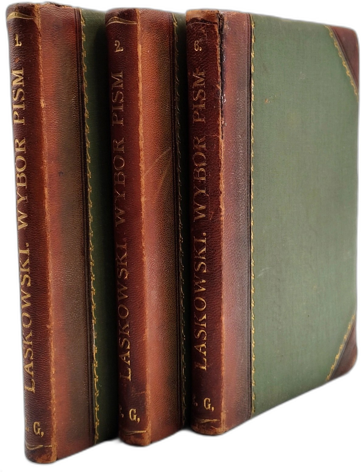 Oprawa twarda, ozdobna, półskórek z epoki. Stan ogólny bardzo dobry, małe otarcia, ślad reperacji grzbietu Tomu VI, podpisy własnościowe.