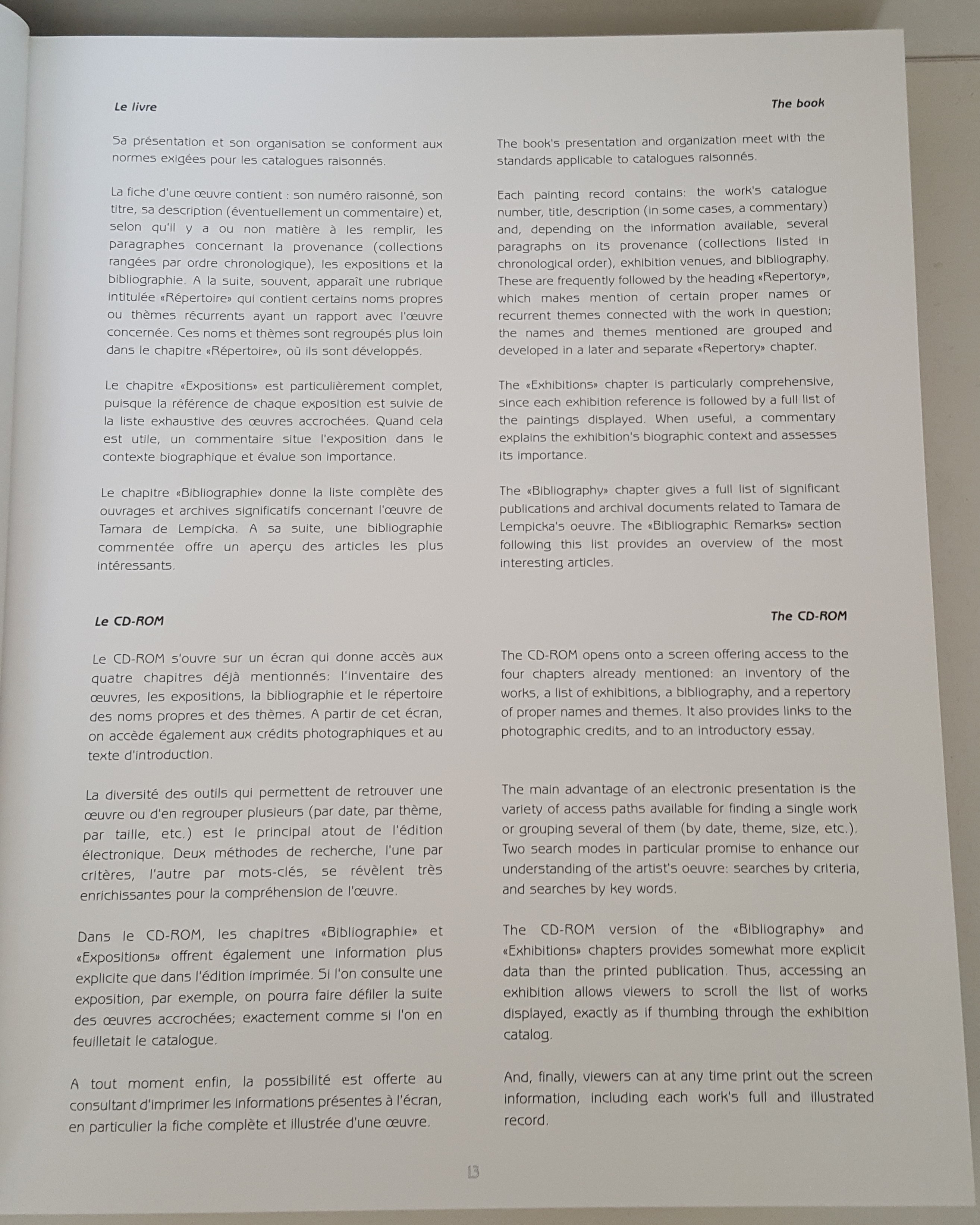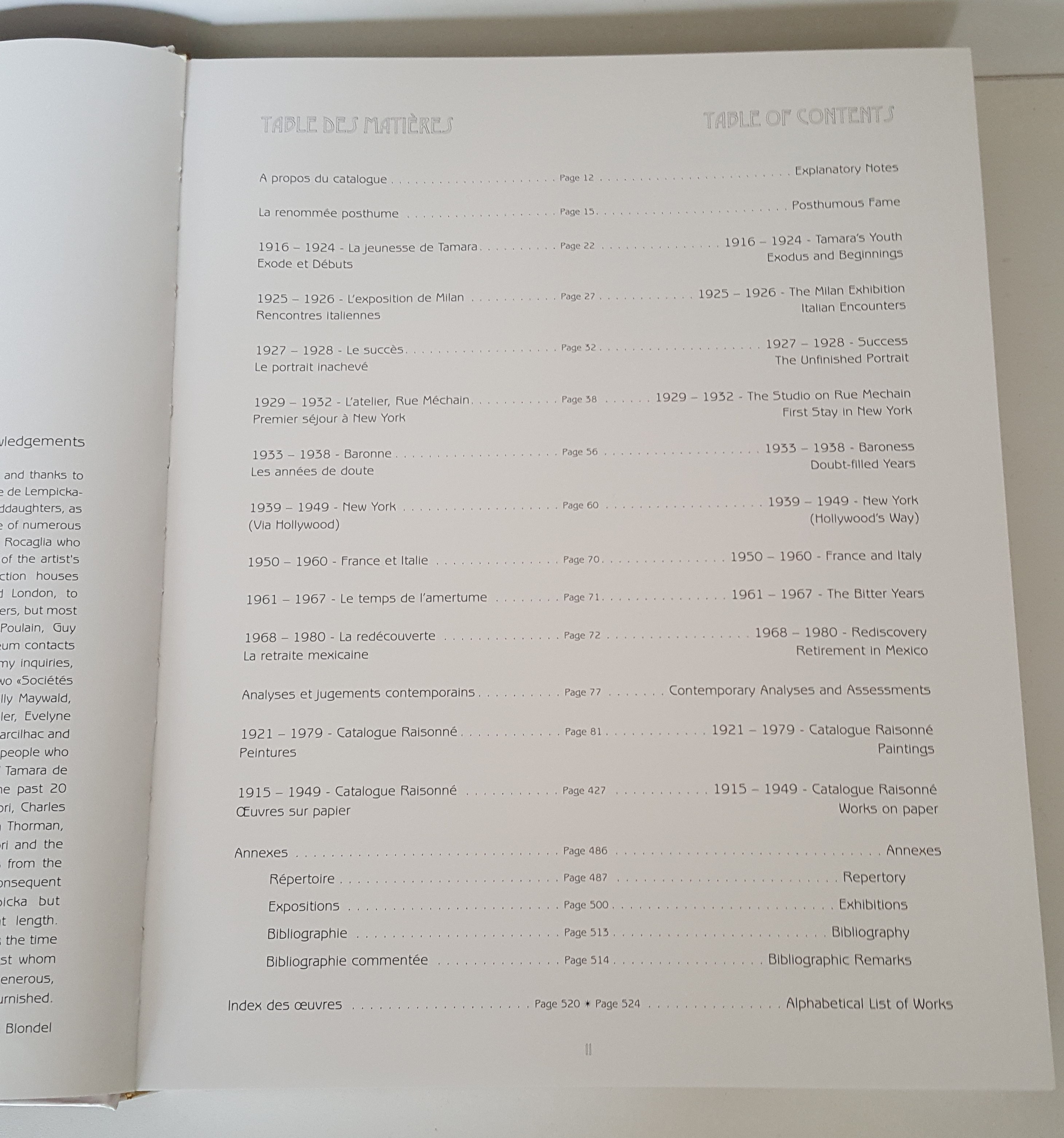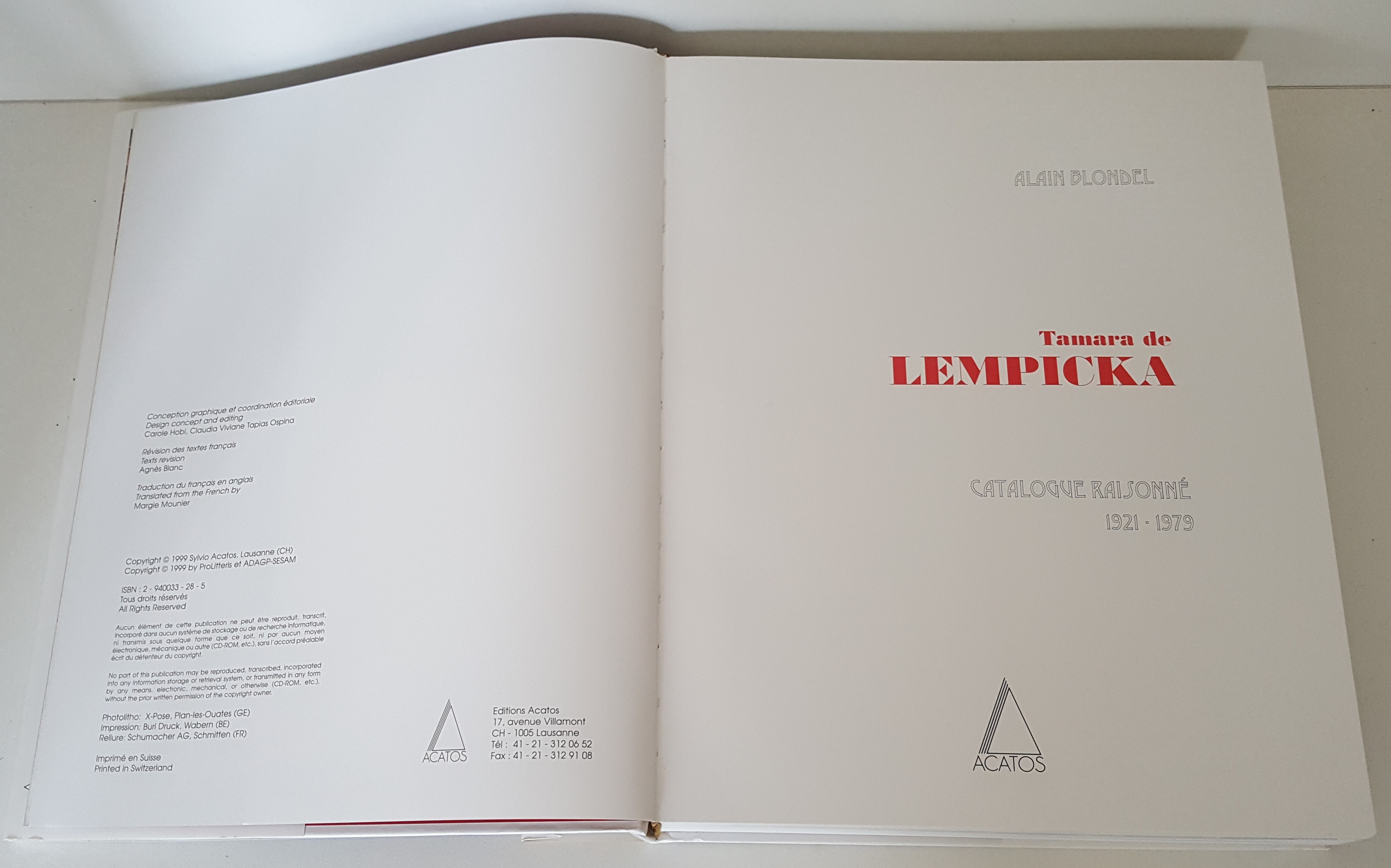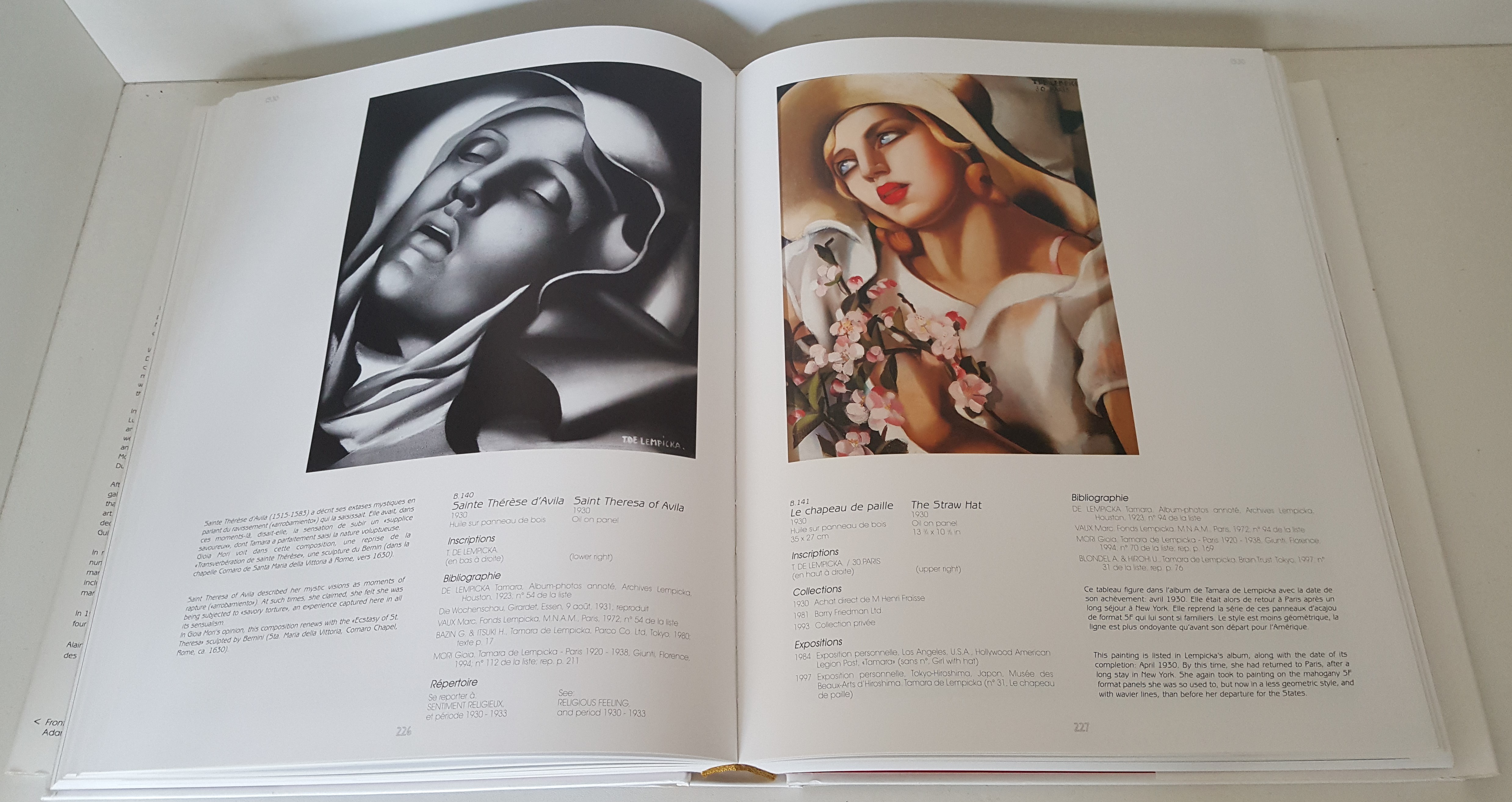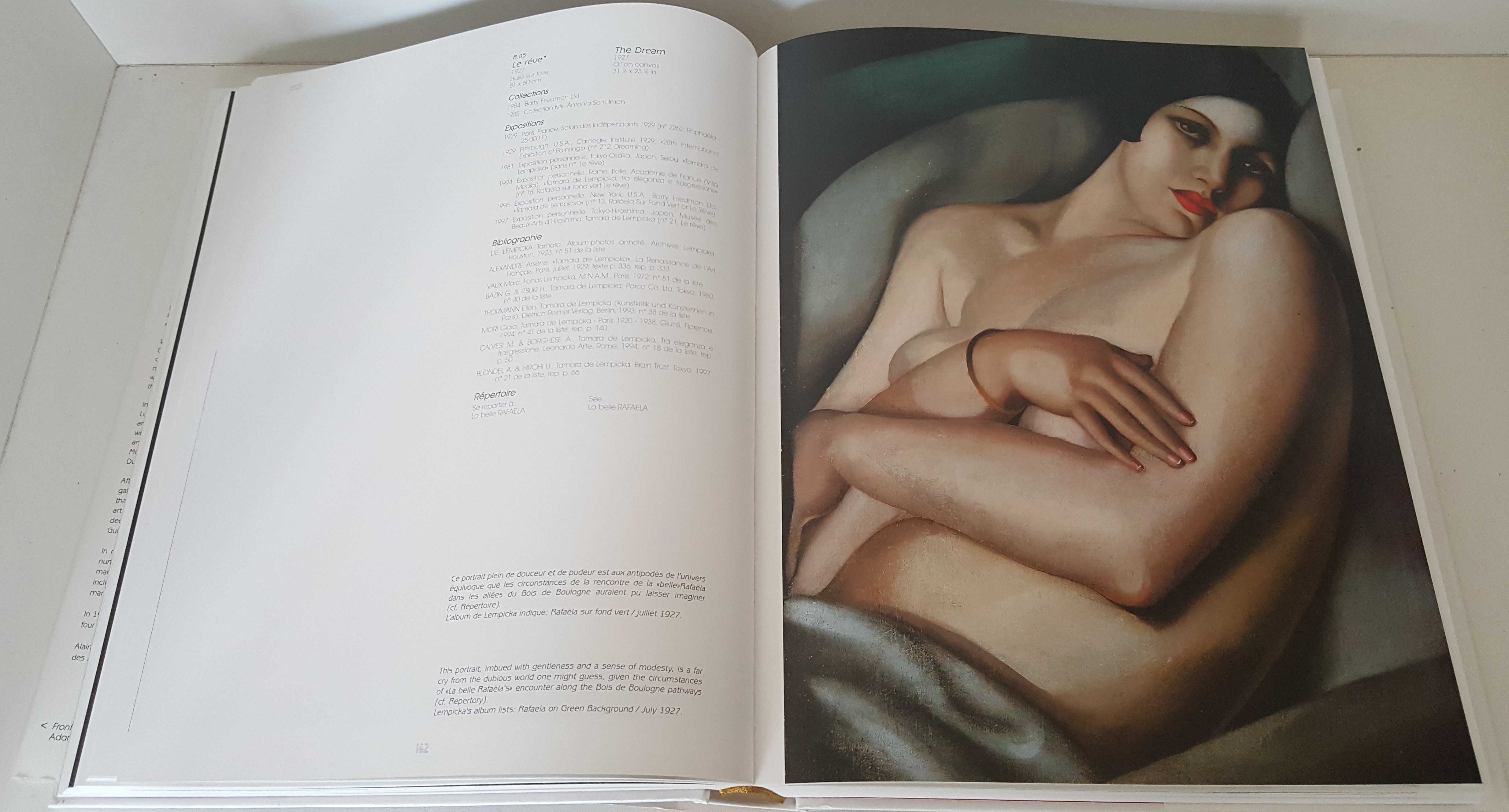 Najobszerniejszy znany na rynku katalog prac Tamary Lempickiej. Format w papierowym futerale(przybrudzenia): 32,5x5,5cm, stron 528 stron. Ok. 500 kolorowych ilustracji, ok. 100 czarno-białych ilustracji. Stan bardzo dobry.