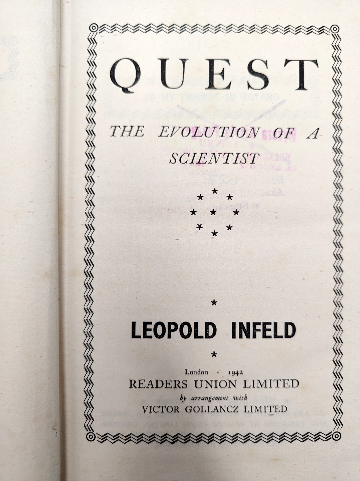 Pierwsze wydanie autobiografii wybitnego polskiego fizyka Leopolda Infelda (1898–1968), współpracownika Alberta Einsteina i współautora fundamentalnej pracy The Evolution of Physics (1938).