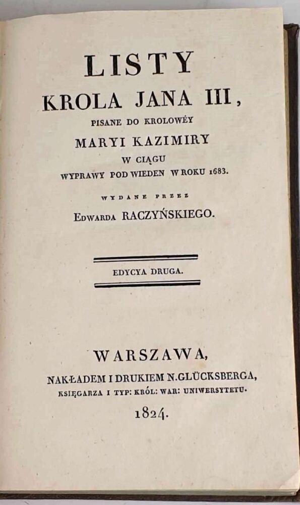 Druga edycja (pierwsza ukazała się rok wcześniej) listów króla Jana III Sobieskiego do żony, Marii Kazimiery d’Arquien. Zbiór zawiera listy pisane w czasie odsieczy wiedeńskiej między sierpniem (pierwszy list, z Gliwic) a grudniem 1683 r. (ostatni list, z Lubowli). Łącznie trzydzieści listów (z przydaniem fragmentu listu do matki autorstwa królewicza Jakuba), w tym pismo, w którym Sobieski zawiadamia Marysieńkę o wiktorii wiedeńskiej (pierwsza karta tego listu dołączona w postaci odbitki litograficznej).