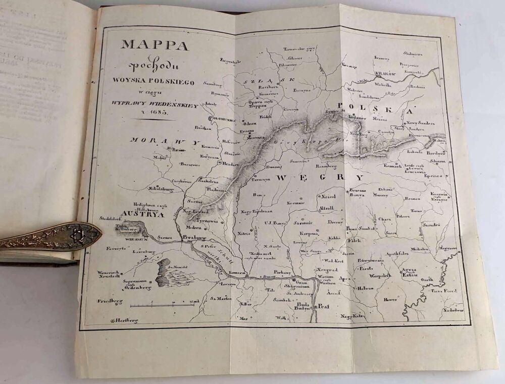 Dołączona litografowana rozkładana „Mapa pochodu woyska polskiego w ciągu wyprawy wiedeńskiey roku 1683”.