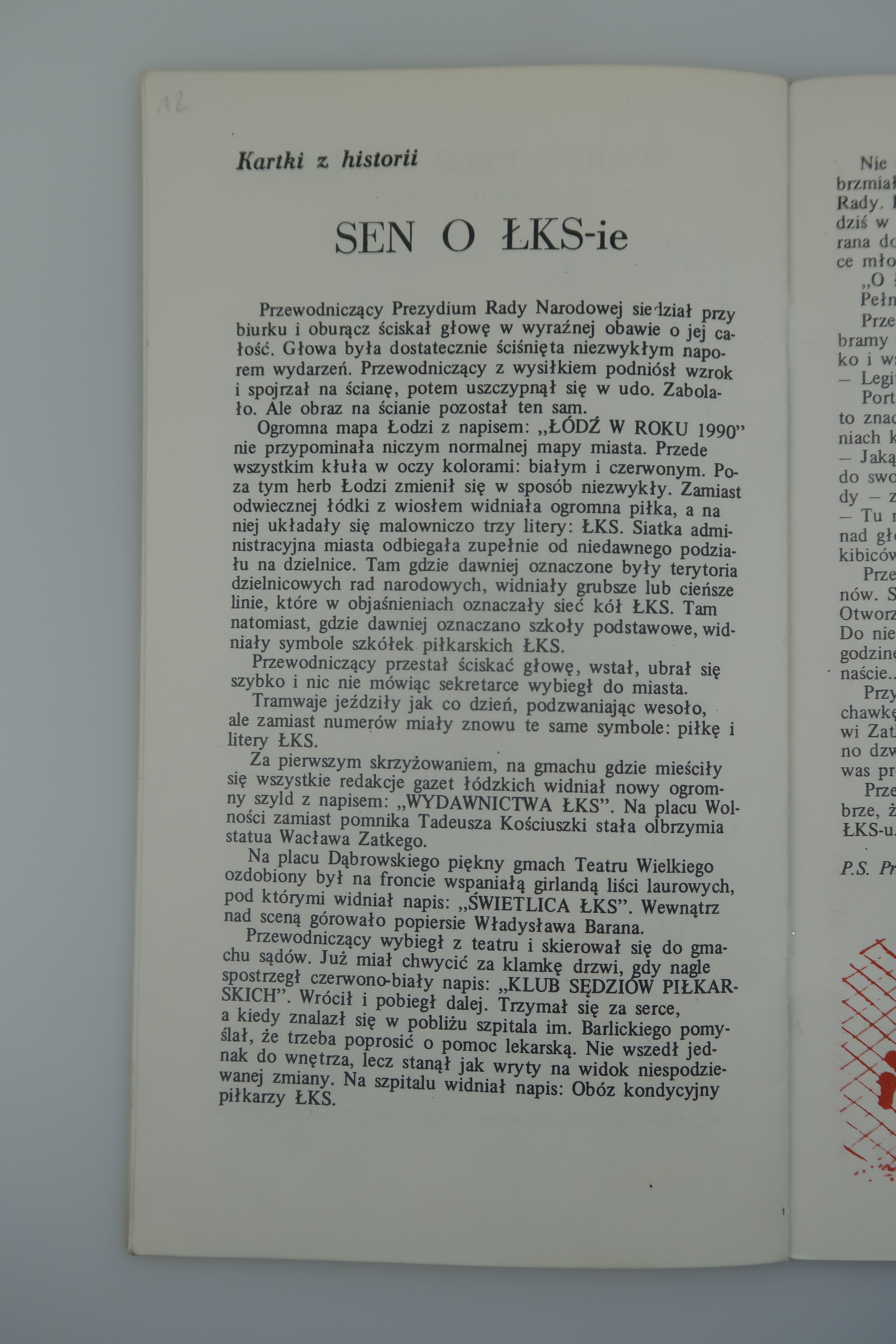 Łódzki Klub Sportowy, tekst i oprac. Bogusiak Jacek, s. 14, wym. 11,5 x 21, oprawa broszurowa, nieznaczne przybrudzenia.