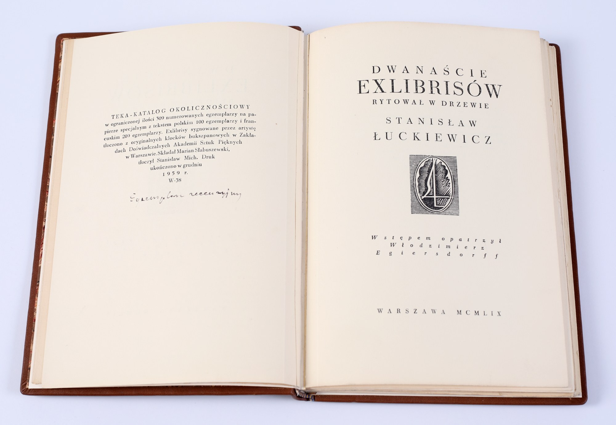 ŁUCKIEWICZ Stanisław - Dwanaście exlibrisów rytował w drzewie... Wstępem opatrzył Włodzimierz Egiersdorff. Warszawa MCMLIX (1959), k. [5], tablic [12] z wklejonymi ekslibrisami wykonanymi w technice drzeworytu. Każdy exlibris sygnowany ołówkiem. [współoprawne z:]