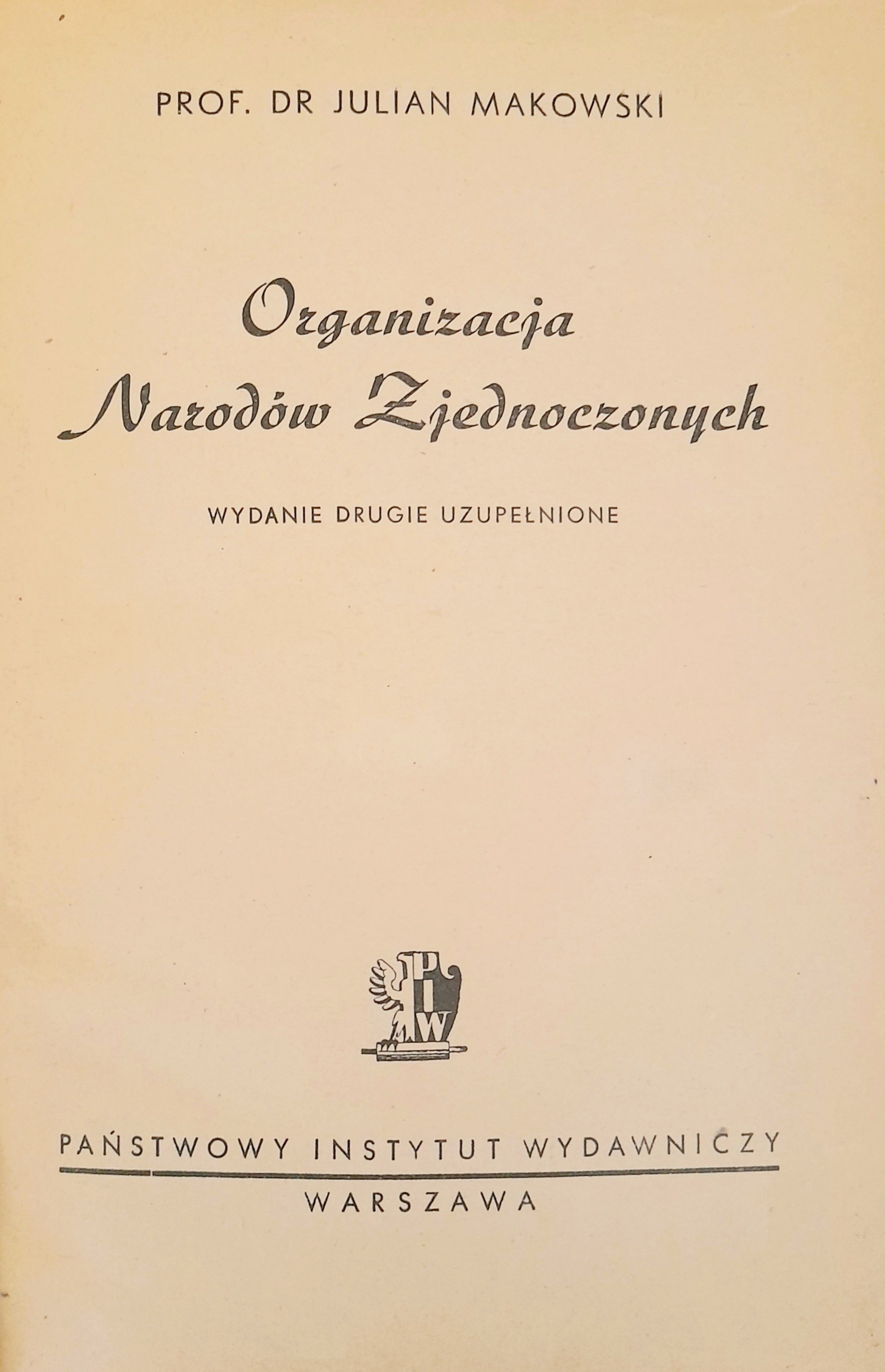 Opis struktury niedawno powstałego (w 1945r.) ONZ, jego cele, organa i zadania, poszerzone o rozdział o idei powstania narodów zjednoczonych.