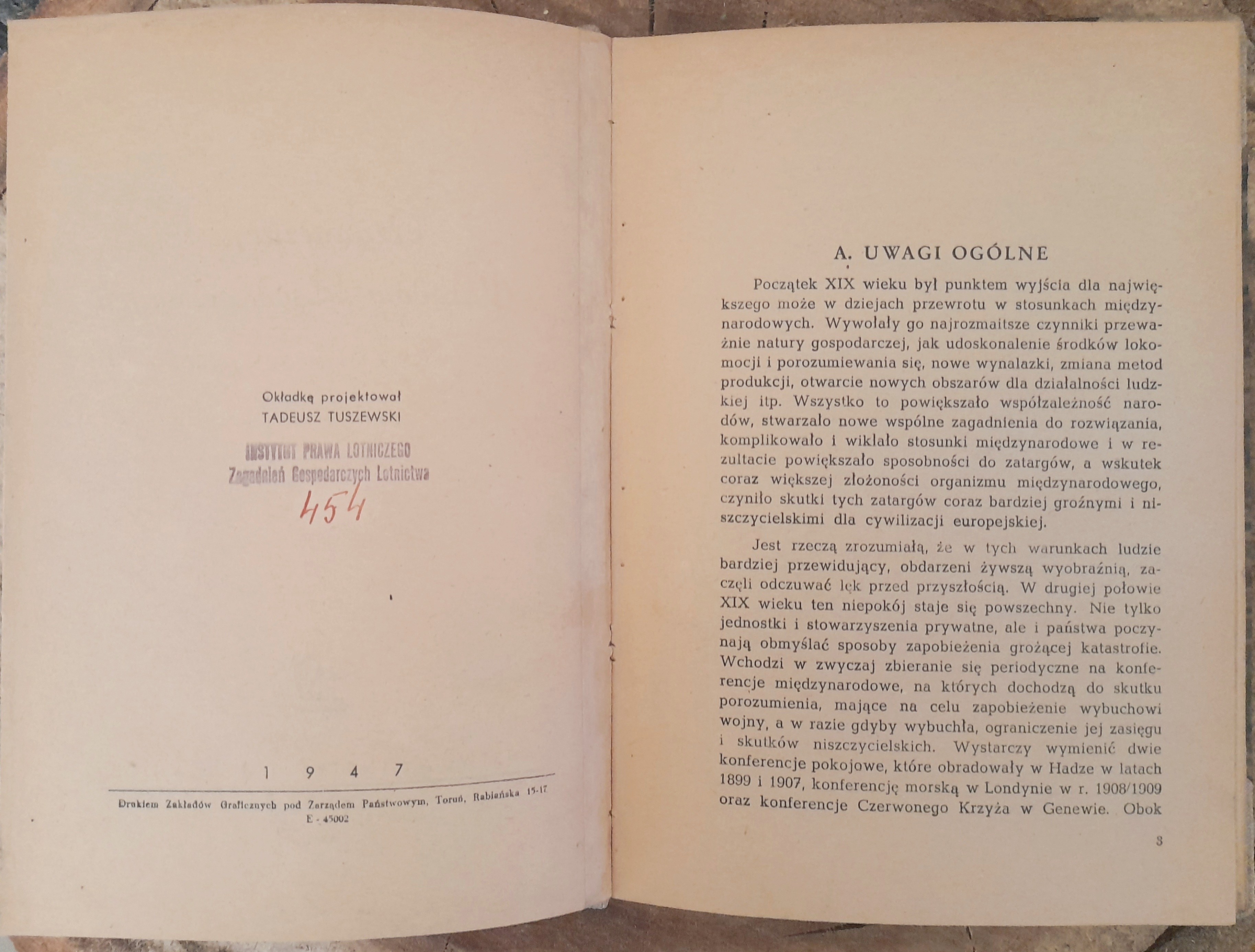Na pierwszej i ostatniej stronie pieczątki Instytutu Prawa Lotniczego.