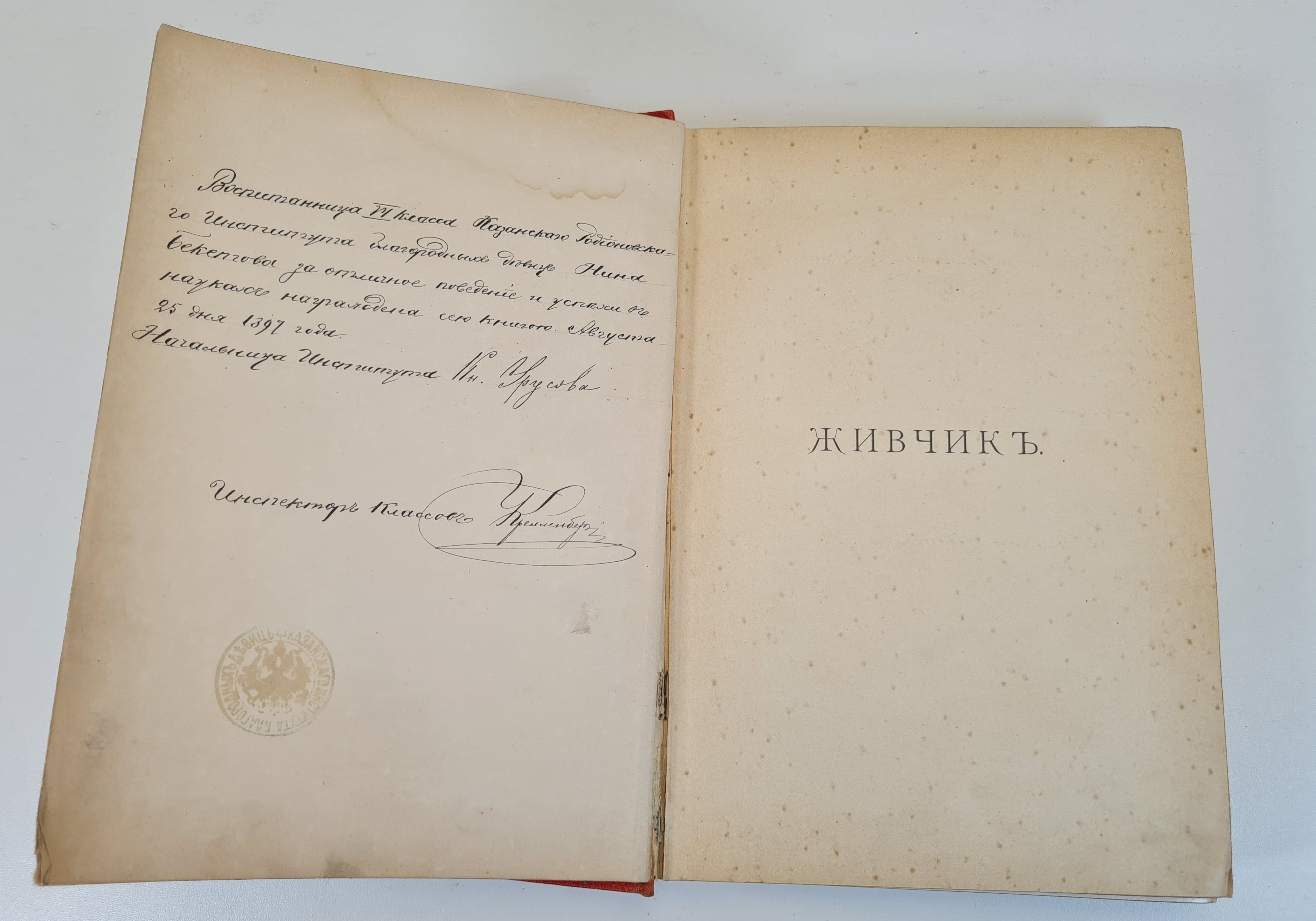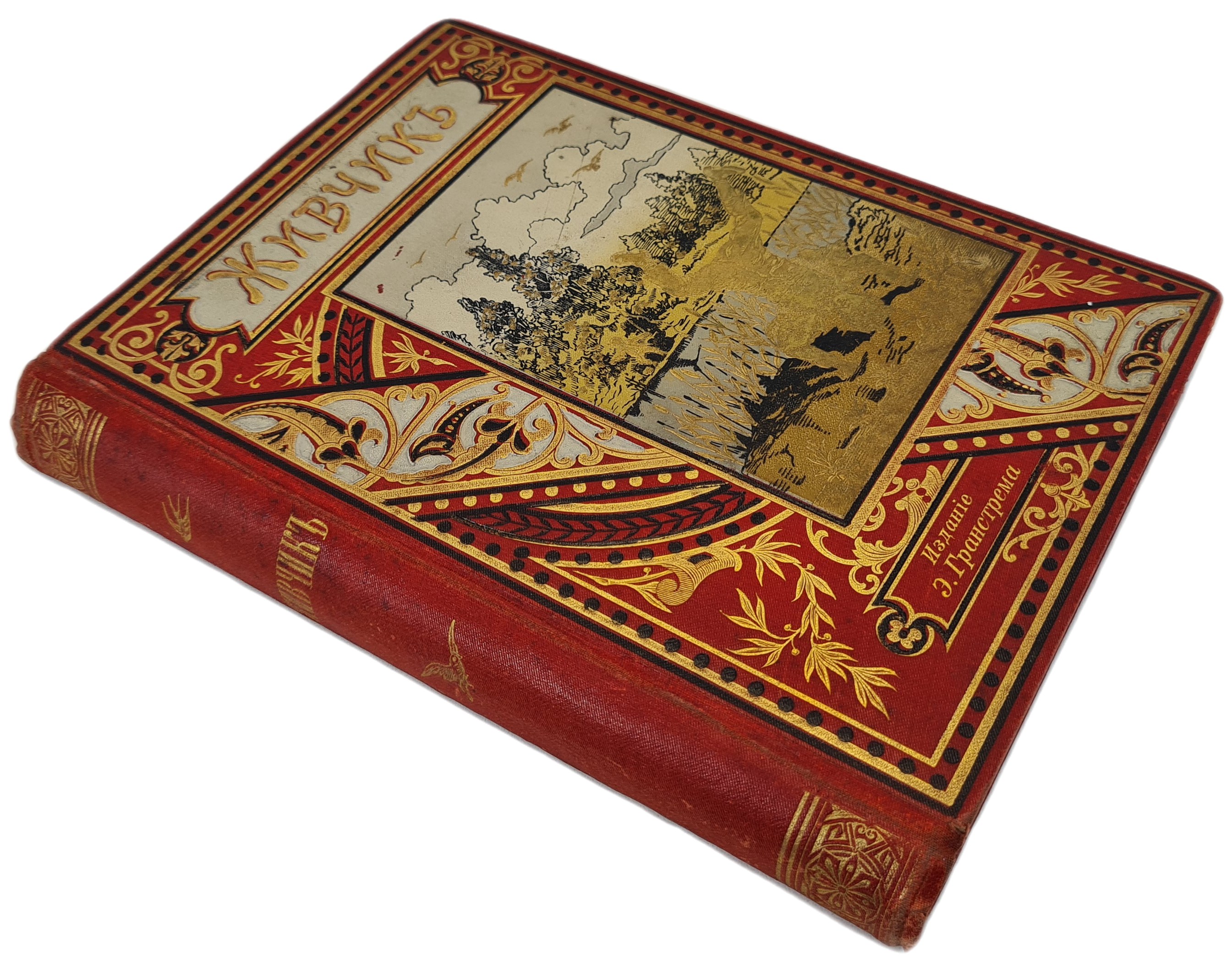 Typolitografia autorstwa K. BIRKENFELDY, V. O., 8 s., nr 1. ST. PETERSBURG 1896. Bogato ilustrowany rycinami. Wym.22,5x17 cm; stron 279. Oprawa wydawnicza; twarda, płócienna; artystycznie zdobiona okładka, wyklejki, złocone obcięcie kart. Nieznaczne zabrudzenia, delikatny foxing. Dedykacja odręczna.