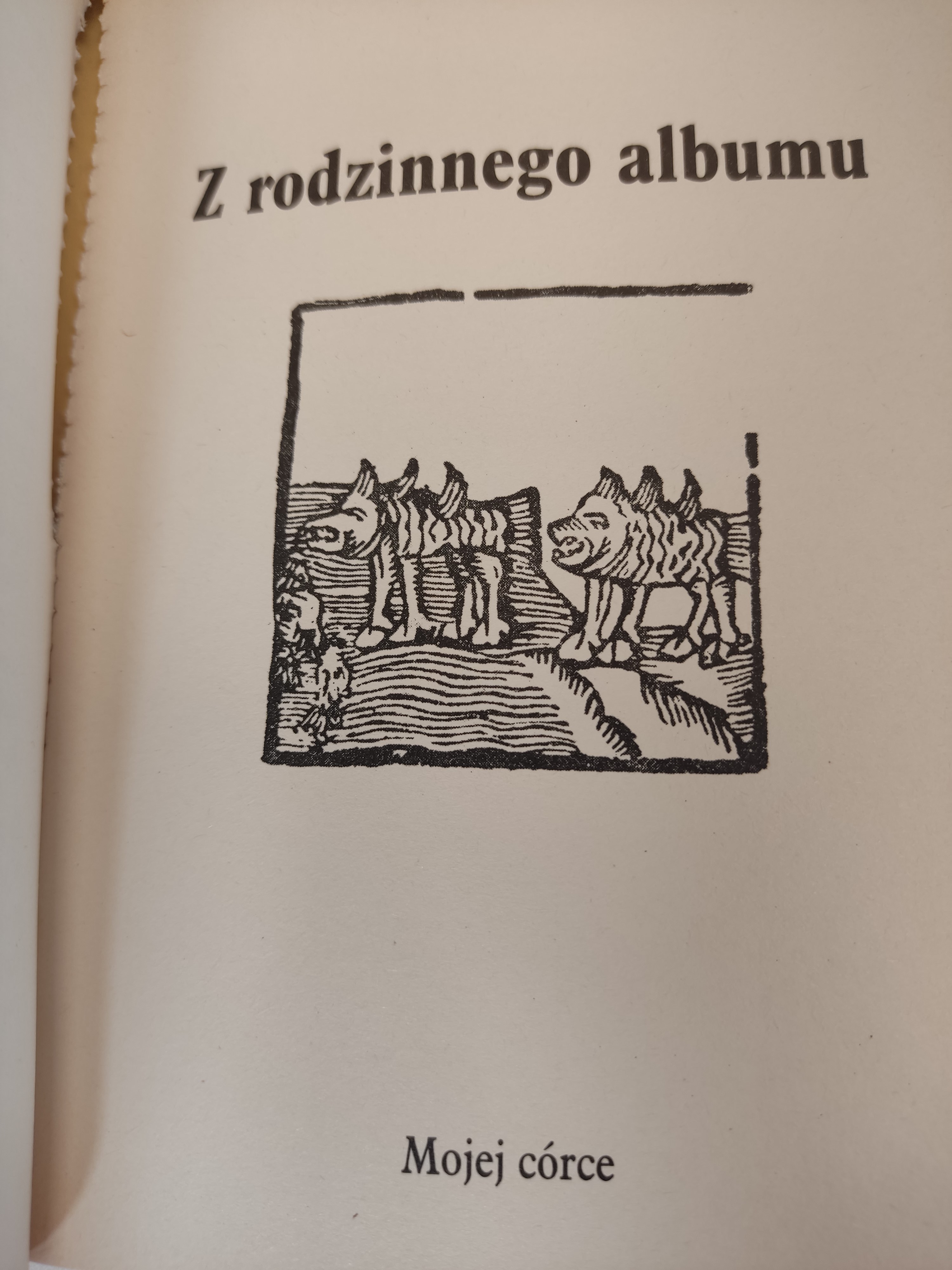 Wydawnictwo TRIO. Warszawa 1997. Wydanie 1. Wym. 19,5x12,3cm; stron 130. Oprawa broszurowa(przybrudzenie grzbietu, nieznaczne otarcia, blok poluzowany- karty 59-62 luzem). Projekt okładki i kart tytułowych J. Bokiewicz. Odręczna dedykacja dla Bożeny i Marka Grońskich.