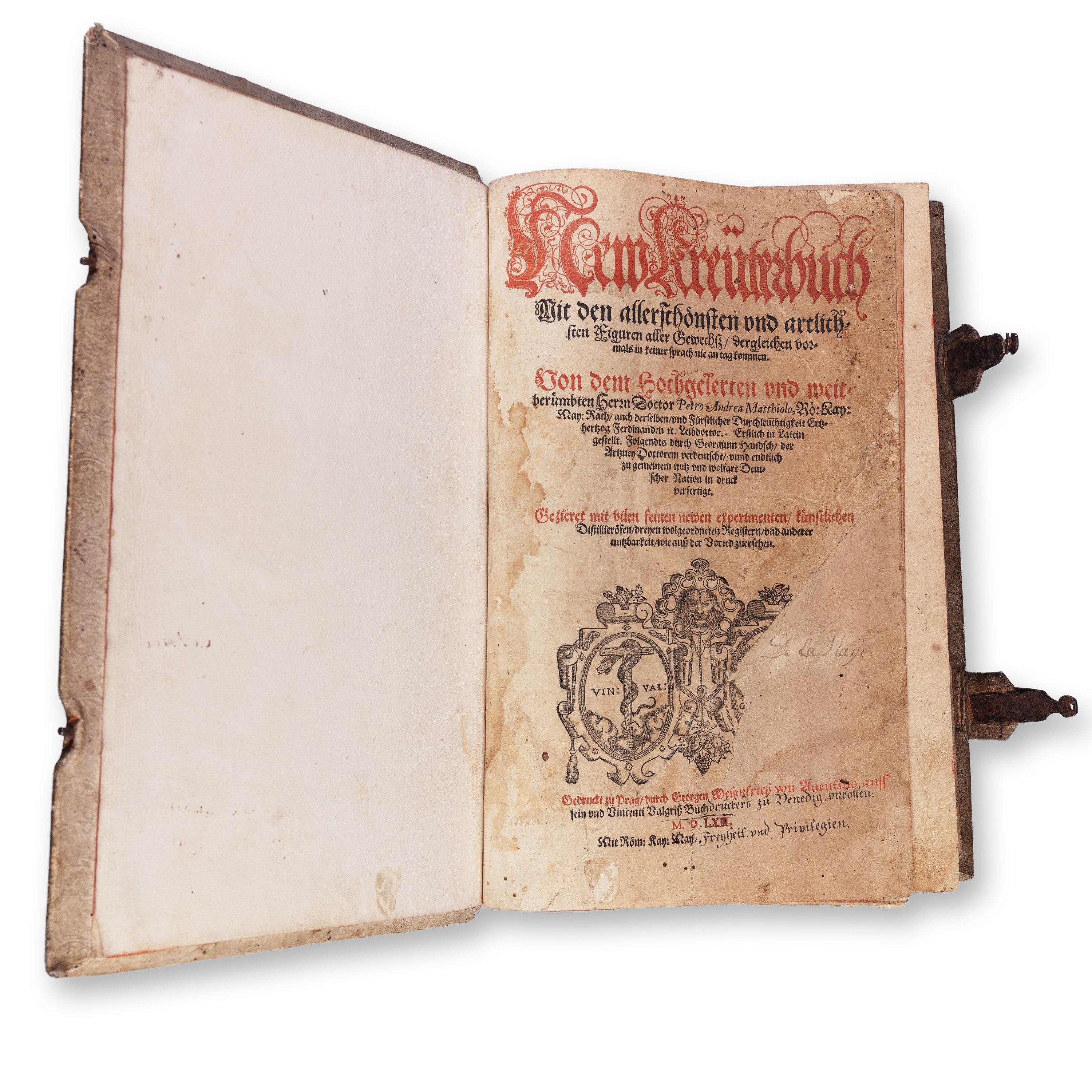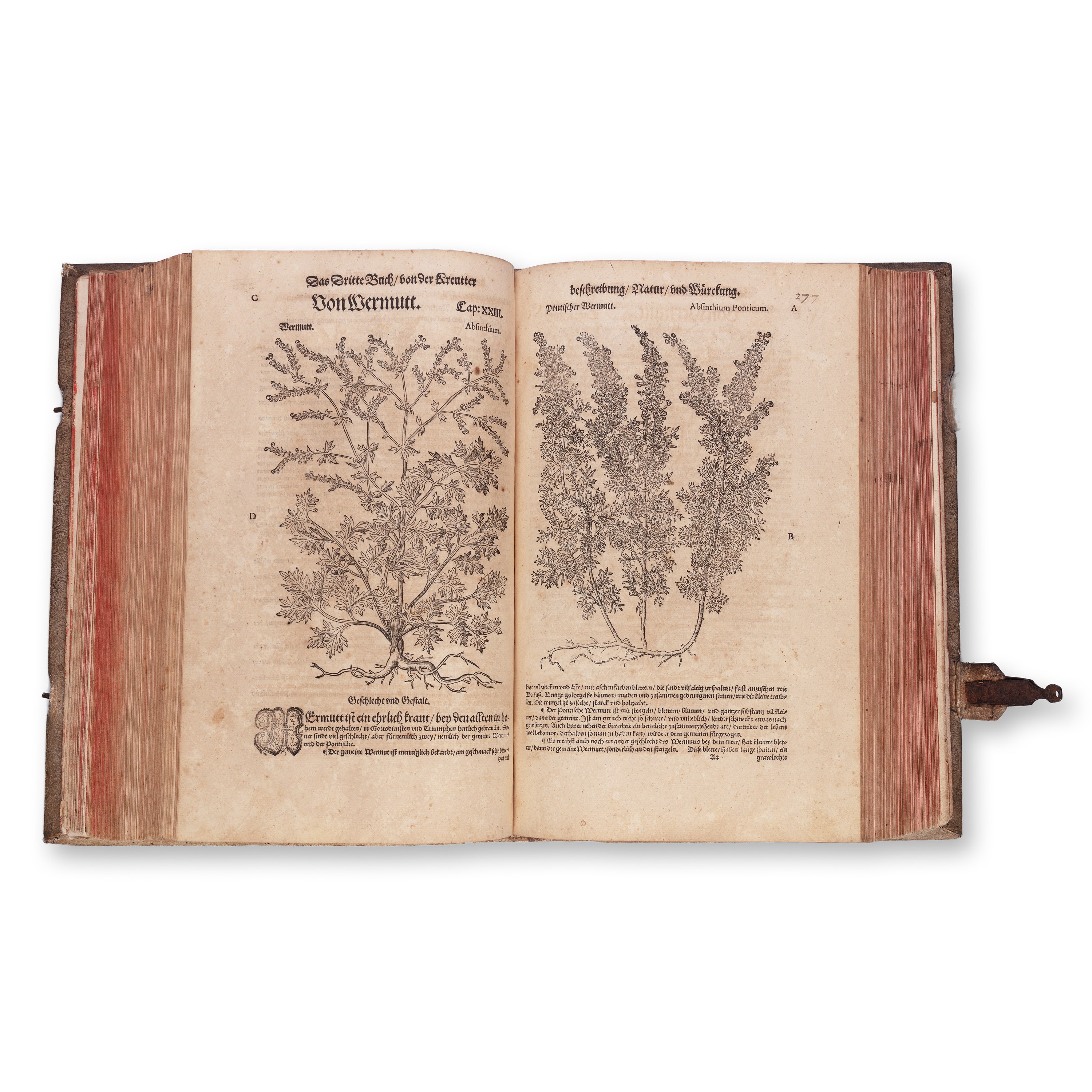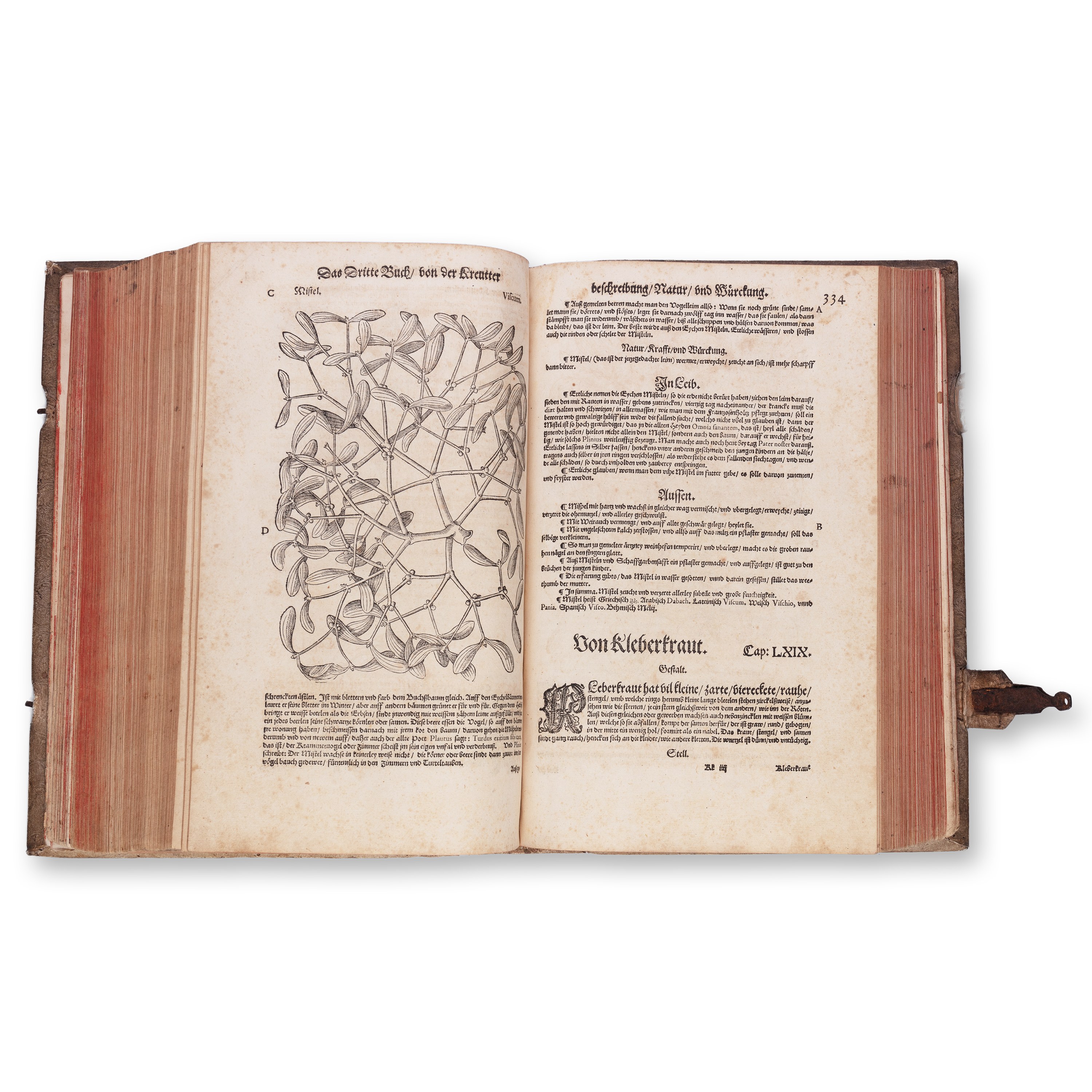 1563 | PUBLISHER: Prag, Georg Melantrich | NUMBER OF PAGES: 575 | LANGUAGE: German | DIMENSIONS: 370 x 260 mm | THE FULL TITLE OF THE WORK: New Kreuterbuch. Mit den allerschonsten und artlichsten Figuren aller Gewechsz. | NOTE: first edition in German translation, large illustrations (woodcuts), two edge clips | CONDITION: insect damage, damp stains, spots, part of title page missing (written by hand), last three pages taped