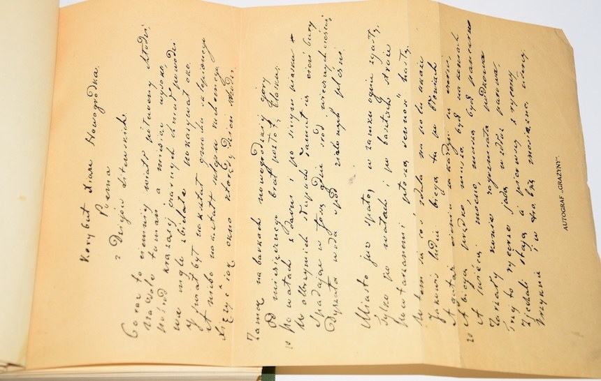 - Stan: niewielkie przetarcia/przybrudzenia oprawy, kilka podklejeń paskiem papieru marginesu str.