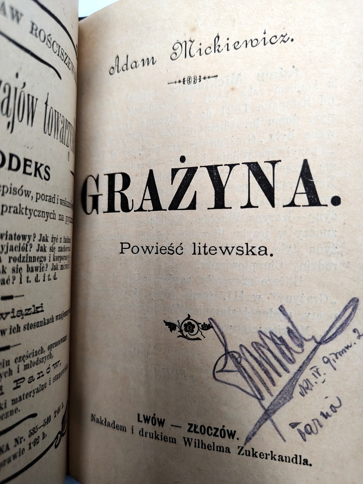Mickiewicz Adam - Żywot i dzieła, Giaur, Grażyna - Złoczów ca. 1920