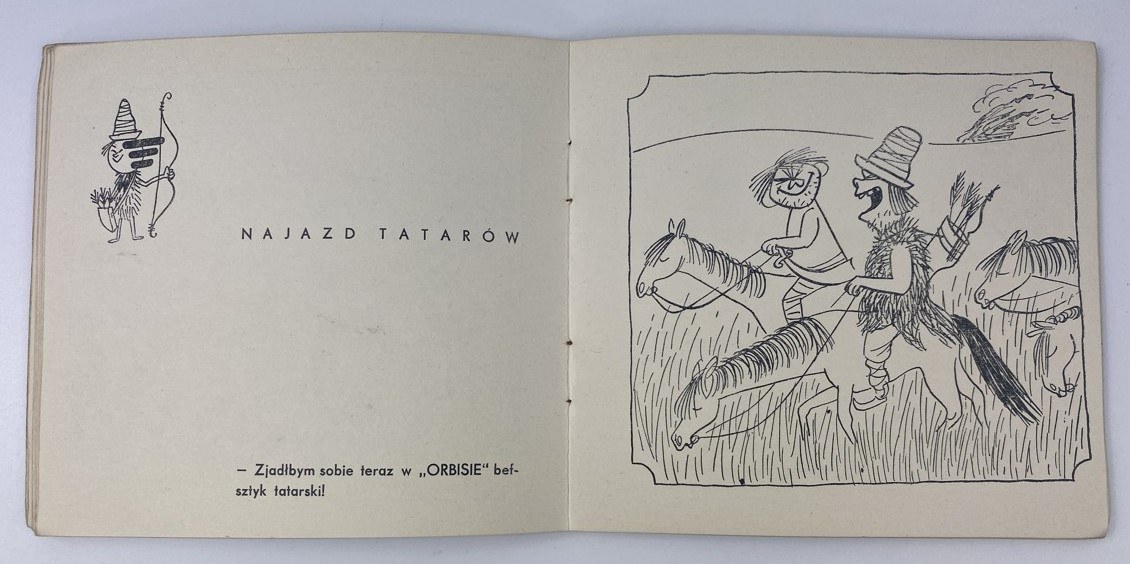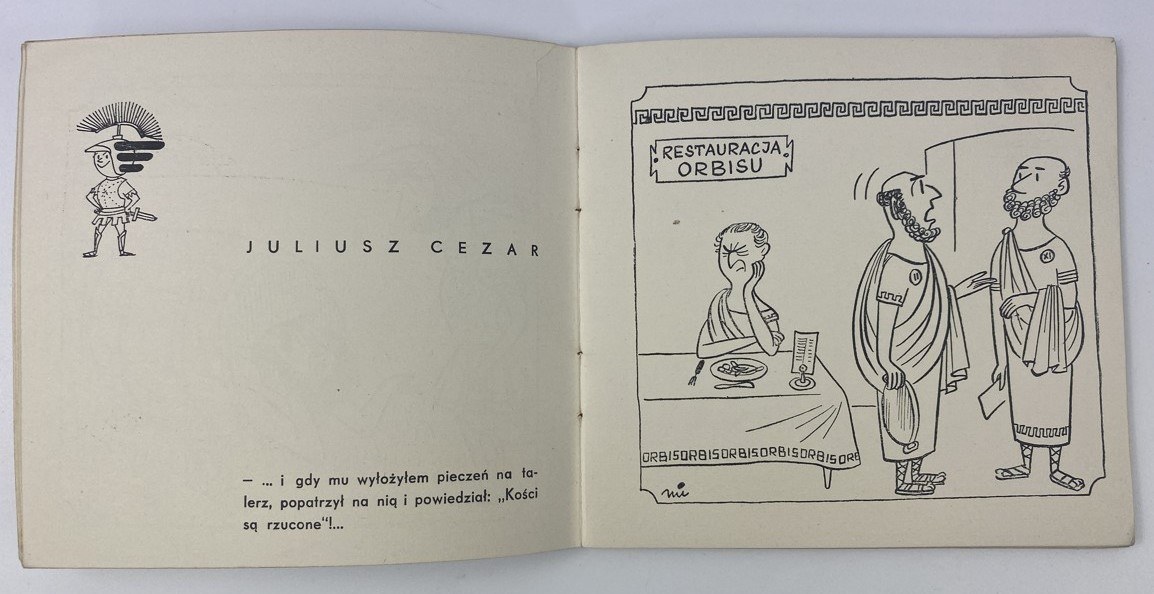 Miklaszewski Gwidon, "Orbis" w historii świata / teksty i rysunki Gwidona Miklaszewskiego, Wydawnictwo Artystyczno-Graficzne RSW "Prasa", Warszawa [1956], s. [48], wymiary 14,5 x 13,5 cm. Nieakt. pieczęć własności. Okładka broszurowa, wydawnicza. Zabrudzenia, niewielkie otarcia, naddarcia okładki.