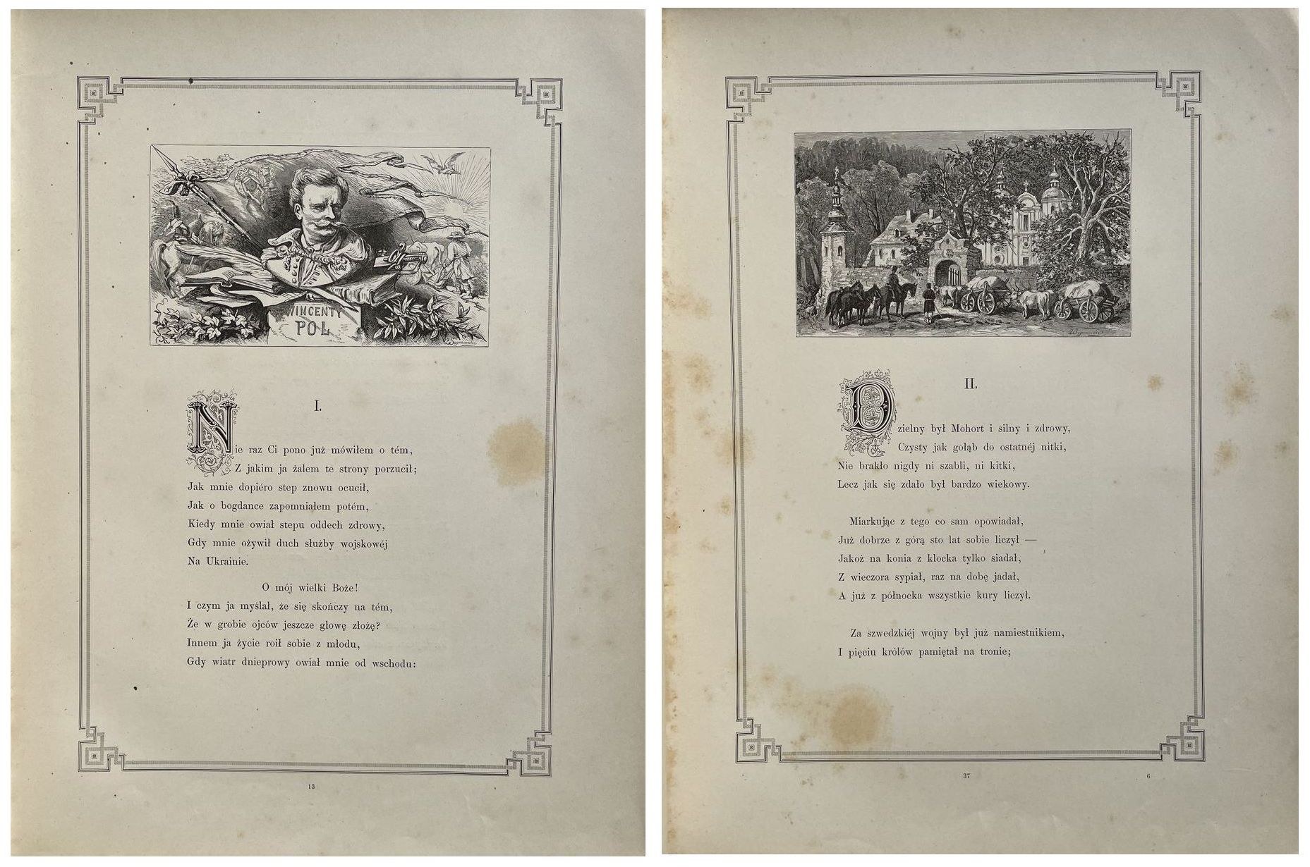 POL Wincenty - Mohort. Rapsod rycerski z podania. Z 24 illustracyami Juliusza Kossaka. Lwów [1883]. Nakł. Księgarni F. H. Richtera (H. Altenberga). 37 cm, str. [4], 199, [1], ilustr. w tekście i na oddz. tabl., brak 3 tablic. Oprawa oryg. wyd. pł. zdob., obcięcie złoc, niew. otarcia, okł. przednia nieznacznie wygięta, przebarwienia pap., stan całości dobry plus.