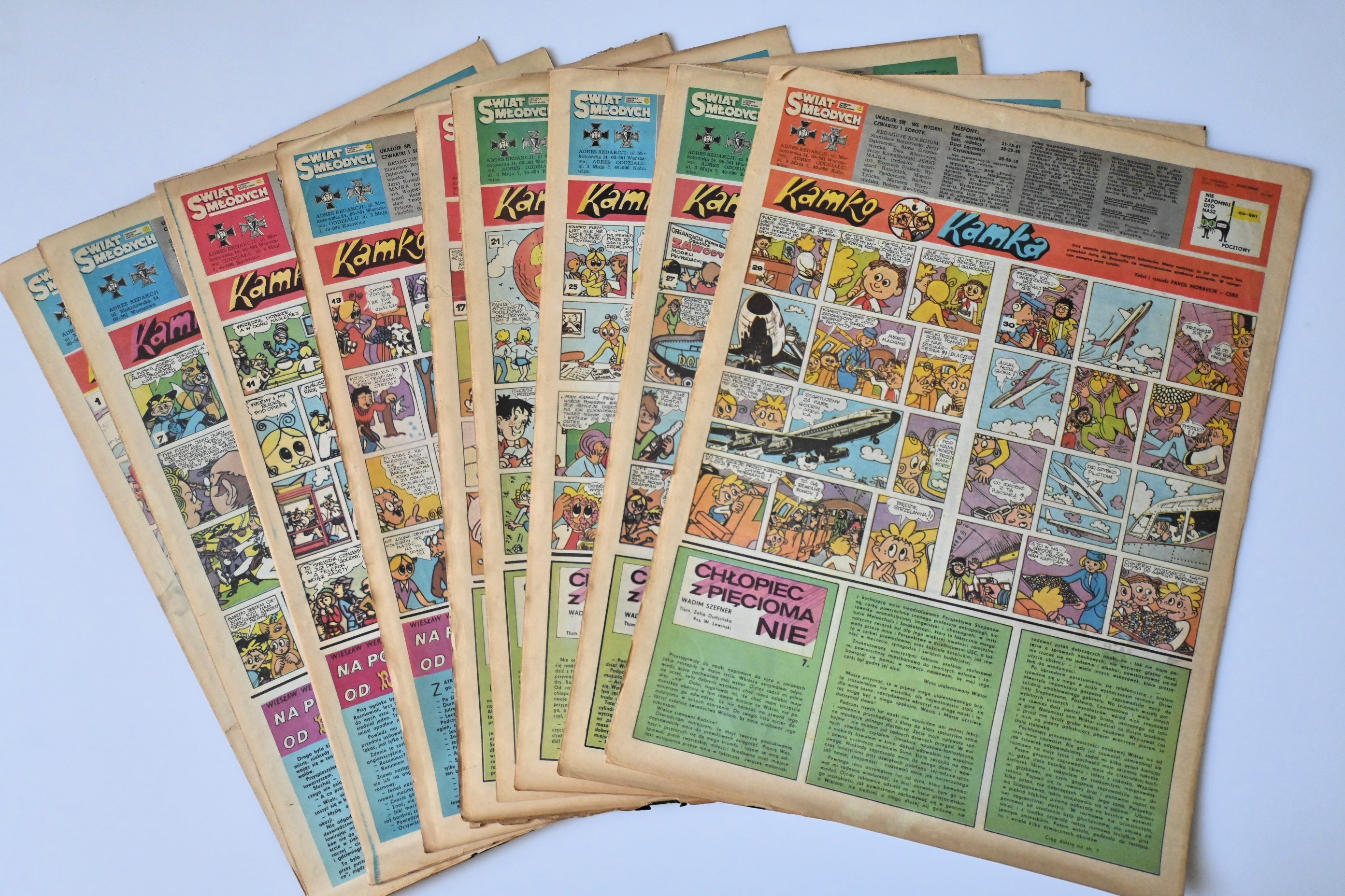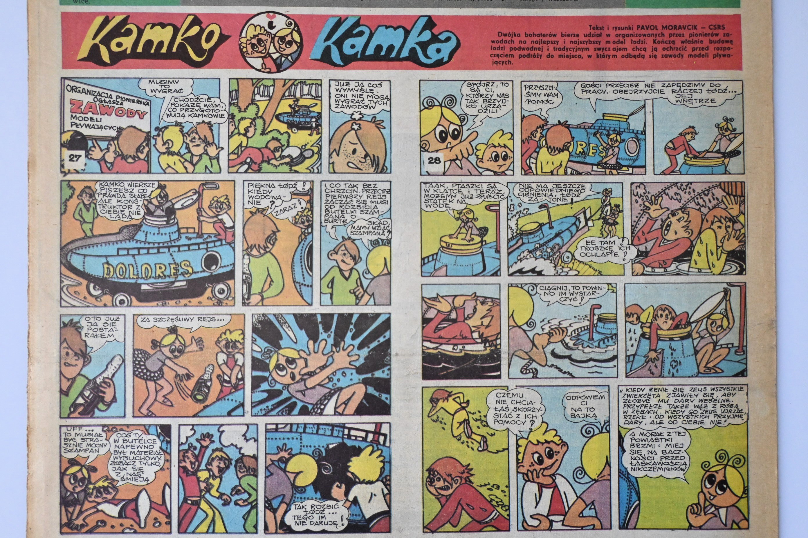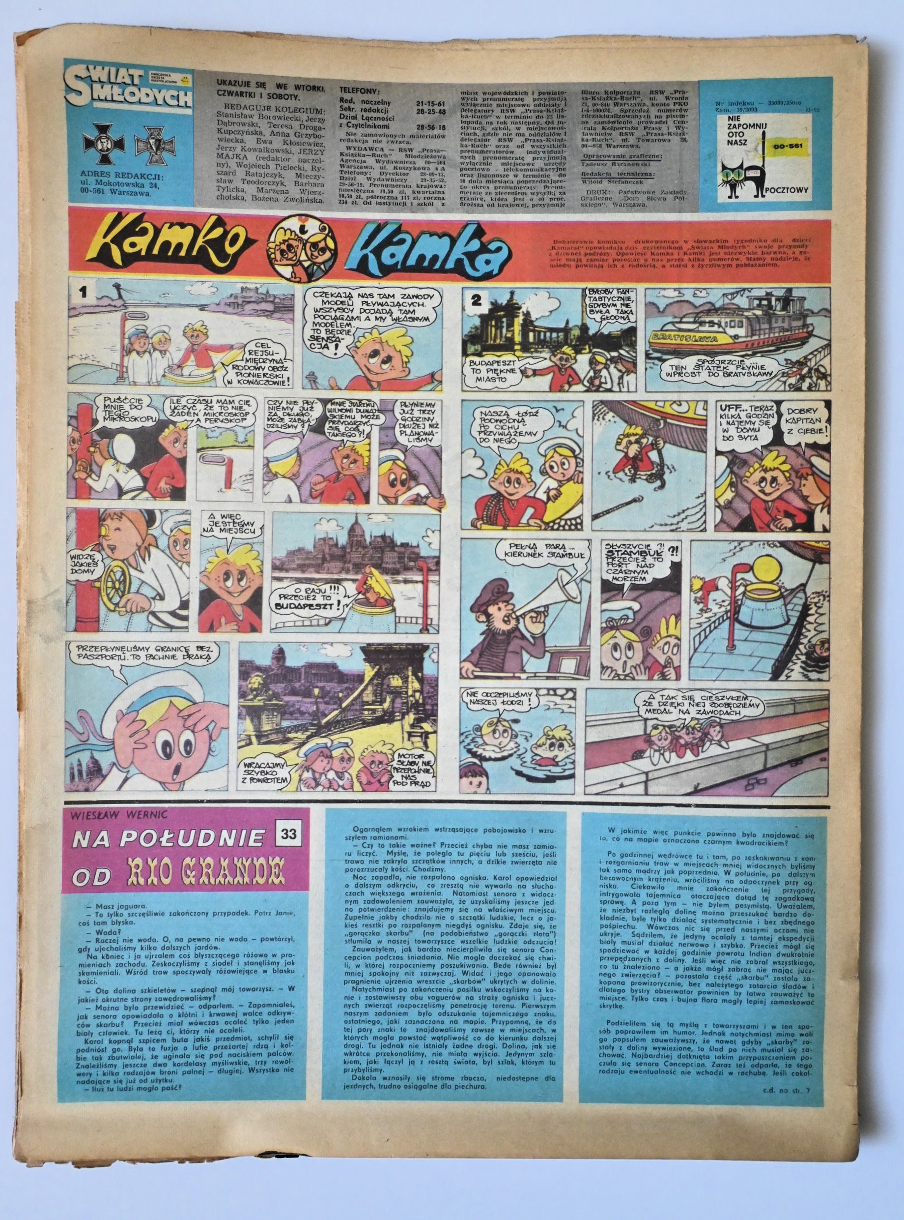 "Bohaterowie komiksu drukowanego z słowackim tygodniku dla dzieci "KAMRAT" opowiadają dziś czytelnikom "Świata Młodych" swoje przygody z dziwnej podróży"