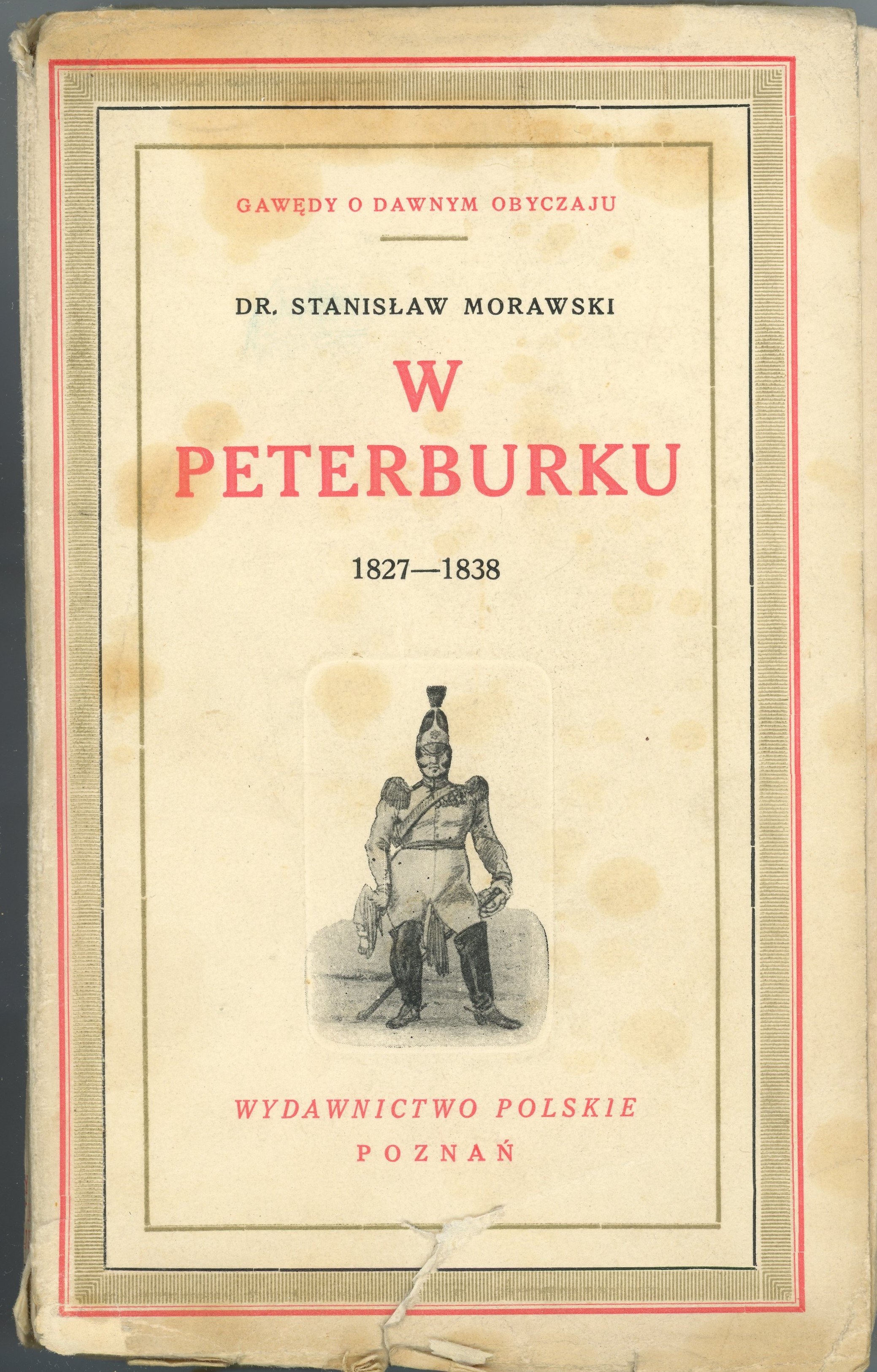 8, s. [8], VIII, 370. 10 tab.: portrety, okł. oryg. Okładka podniszczona, pęknięty blok, zaplamienia, pieczęć i podpis. Gawędy o dawnym obyczaju. Wybór ciekawych pamiętników XVIII i XIX stulecia.