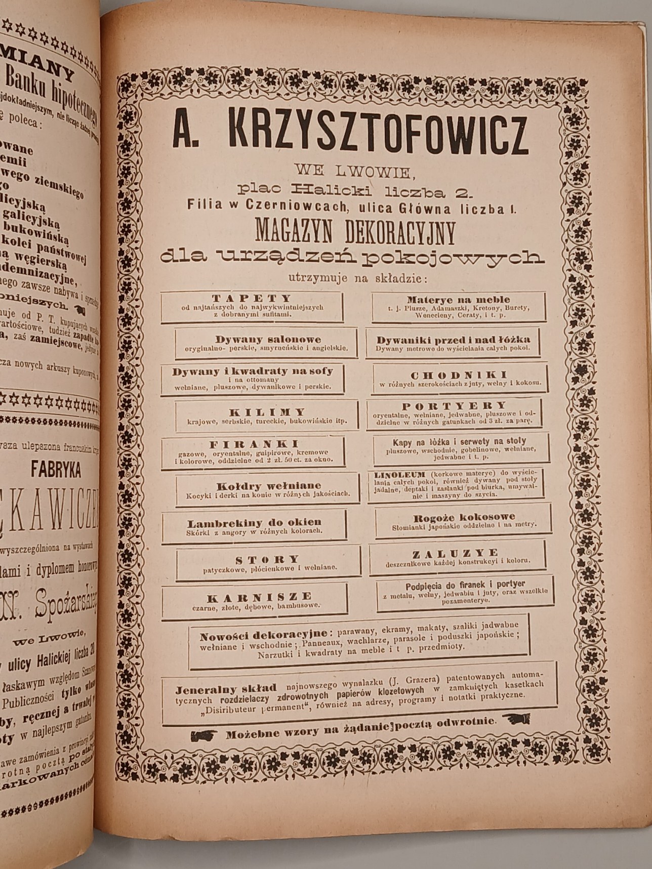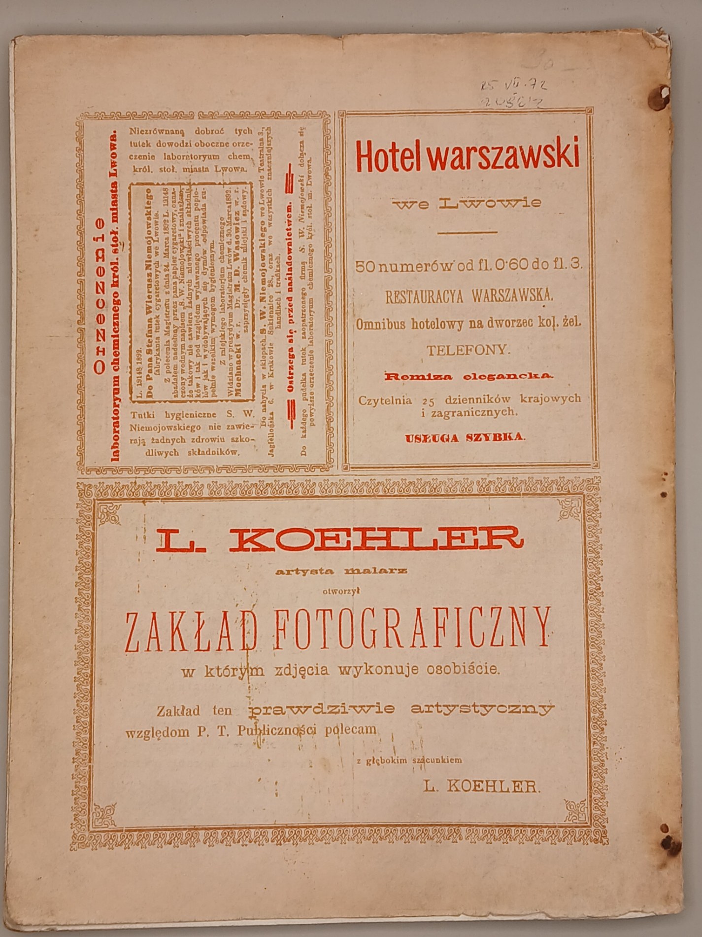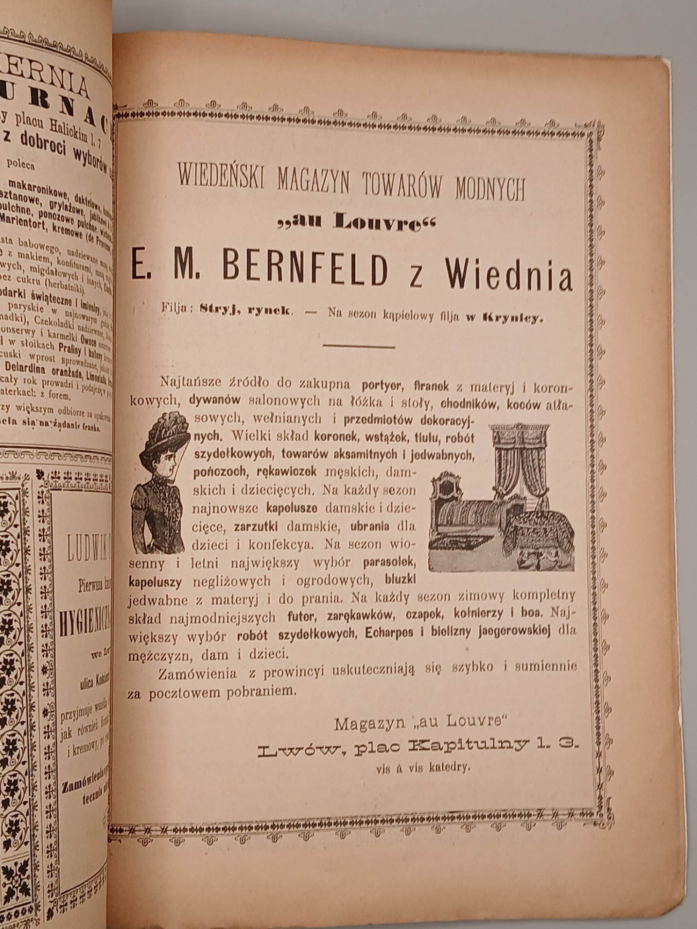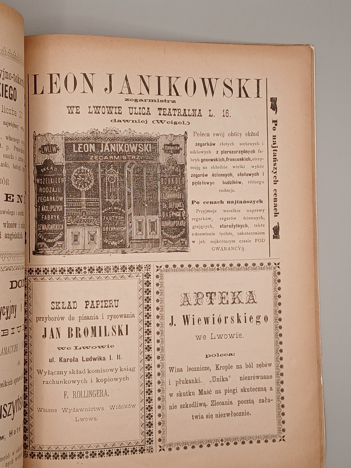 - duży dział reklam, głównie firm lwowskich ale i wiedeńskich, warszawskich i krakowskich.